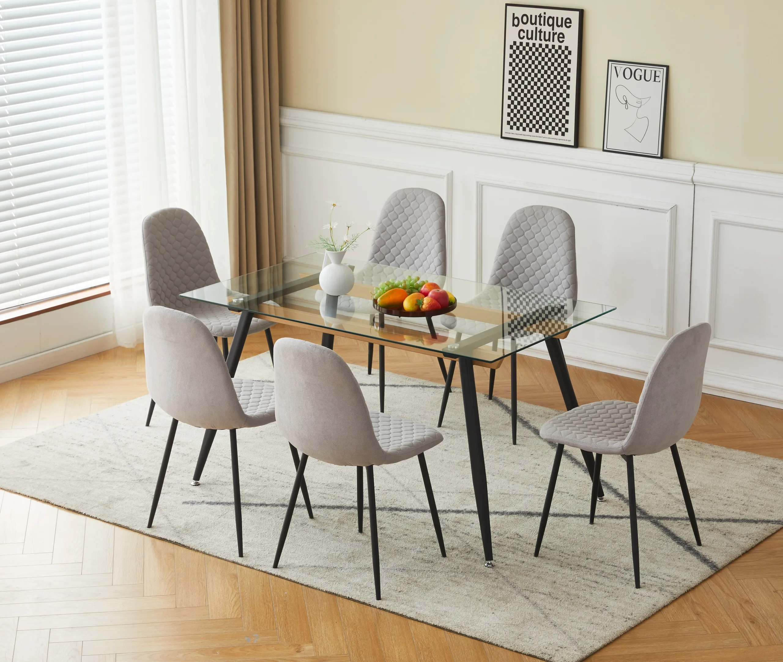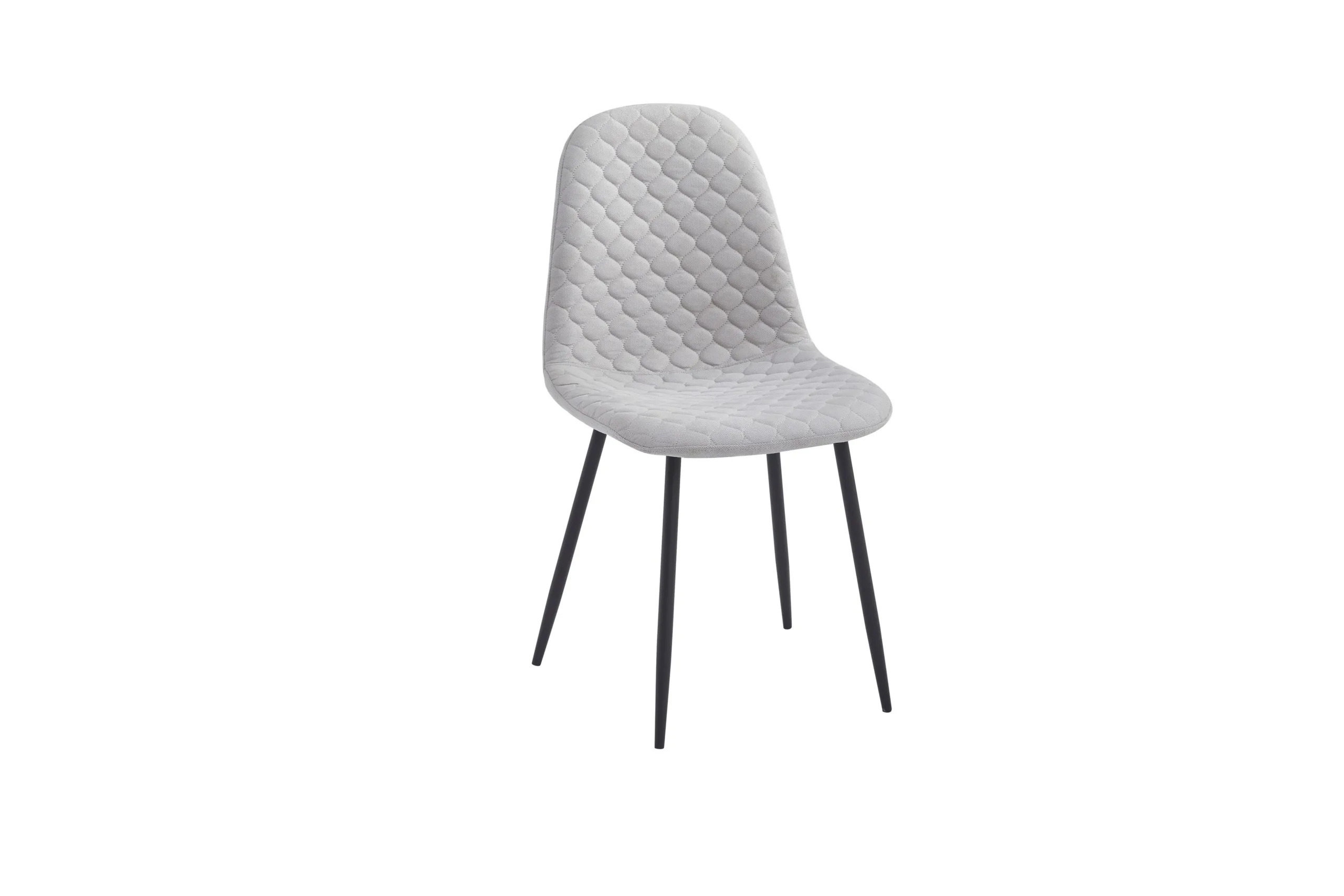 העיצוב המודרני והנקי של כיסאות אוכל מרופדים מעוצבים מתבטא בדוגמת התיפור המעוינים המרהיבה המעטרת את המושב ומשענת הגב. הריפוד האיכותי בגוון אפור נייטרלי משדר אלגנטיות ומכובדות, בעוד רגלי המתכת השחורות והדקיקות מעניקות מראה קליל ועכשווי. השילוב בין הקווים הרכים של הריפוד לבין החוזק של המתכת יוצר הרמוניה עיצובית מושלמת המשתלבת בכל סגנון עיצוב.