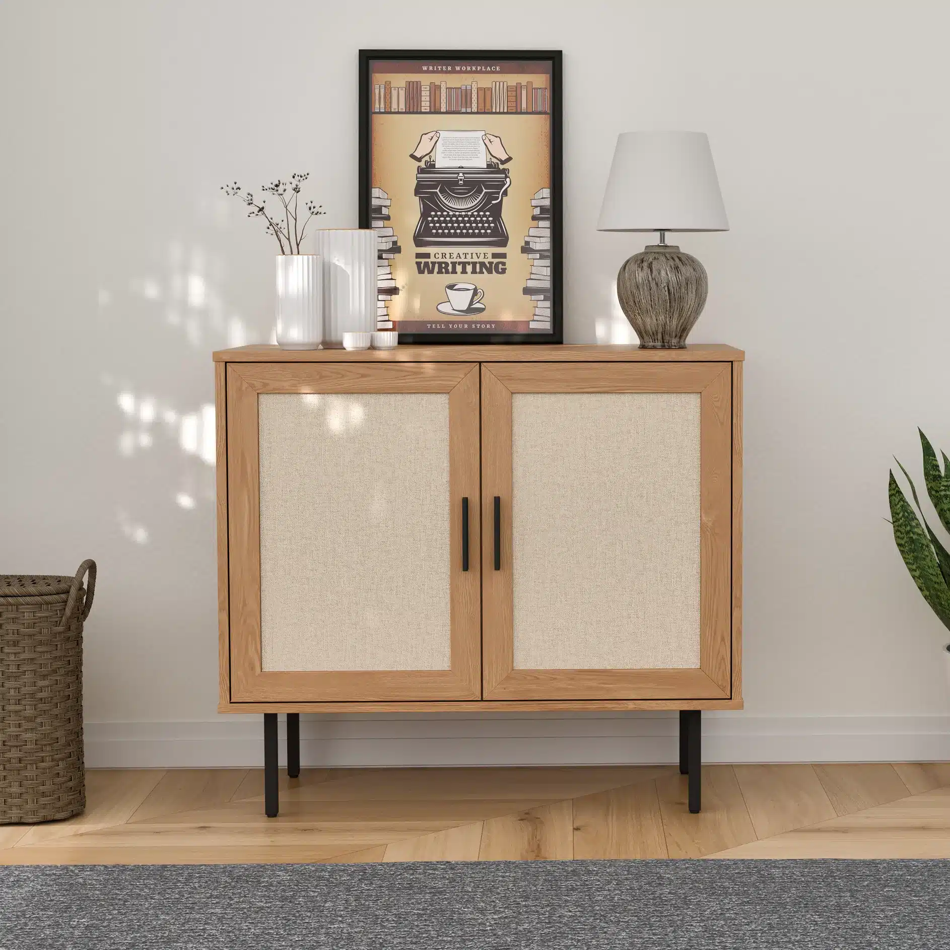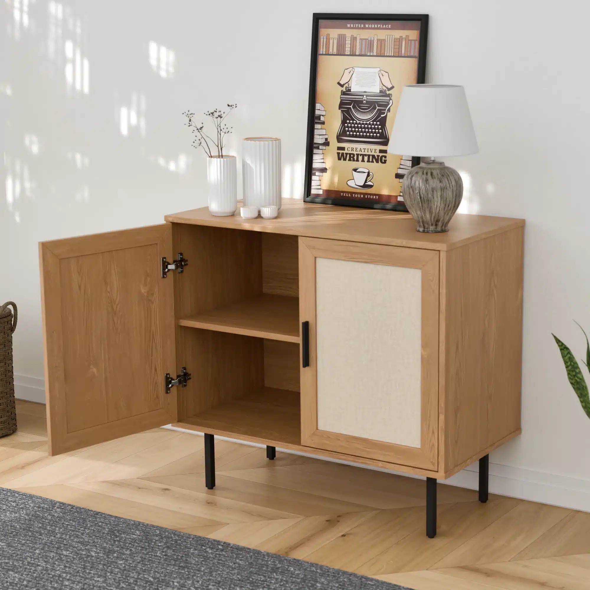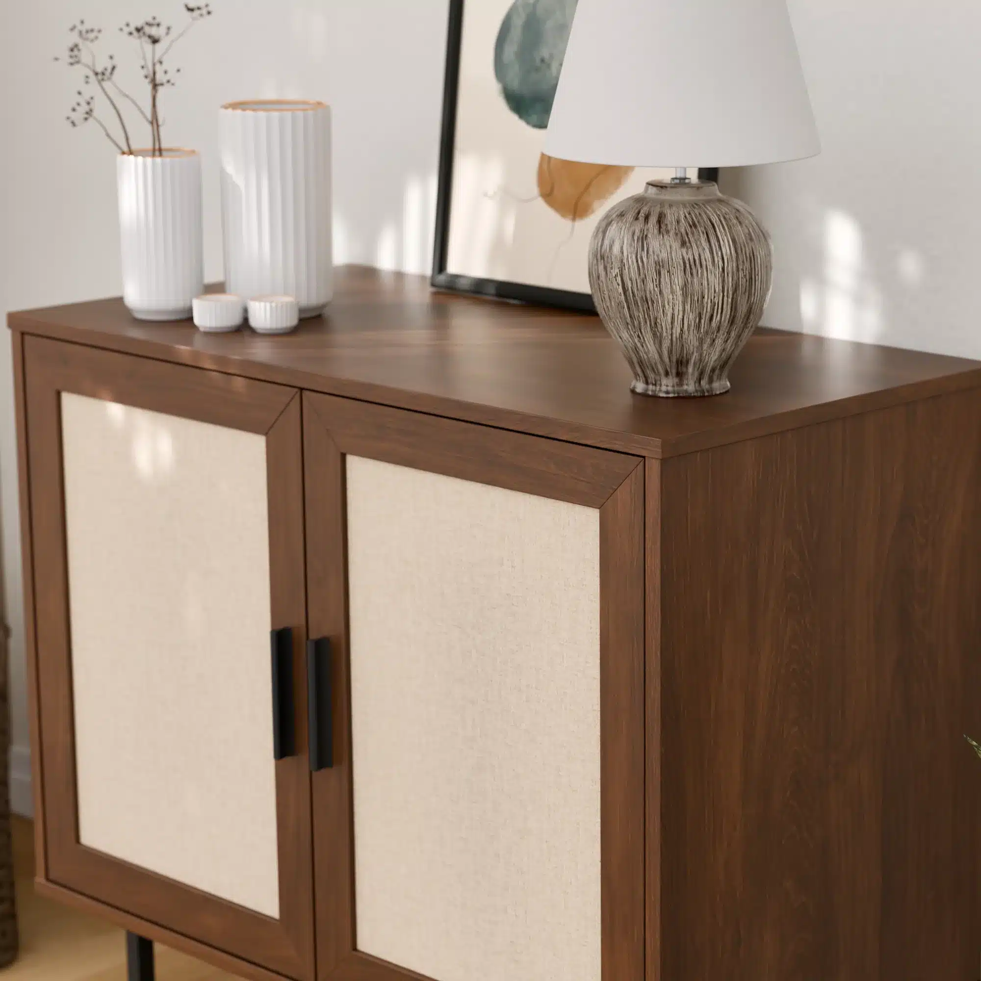 קומודה עם דלתות – ארונית רב שימושית מודרנית בסגנון ראטן