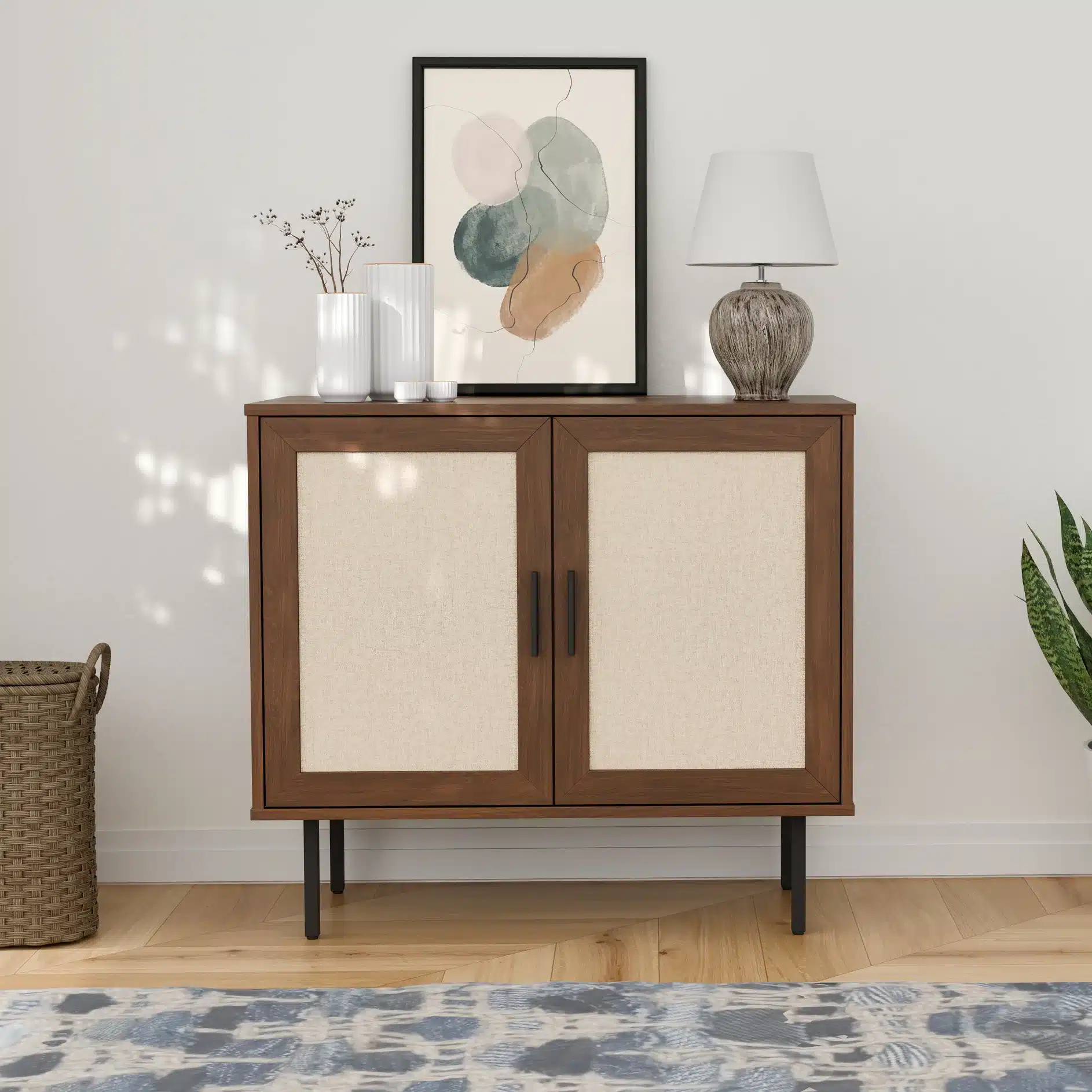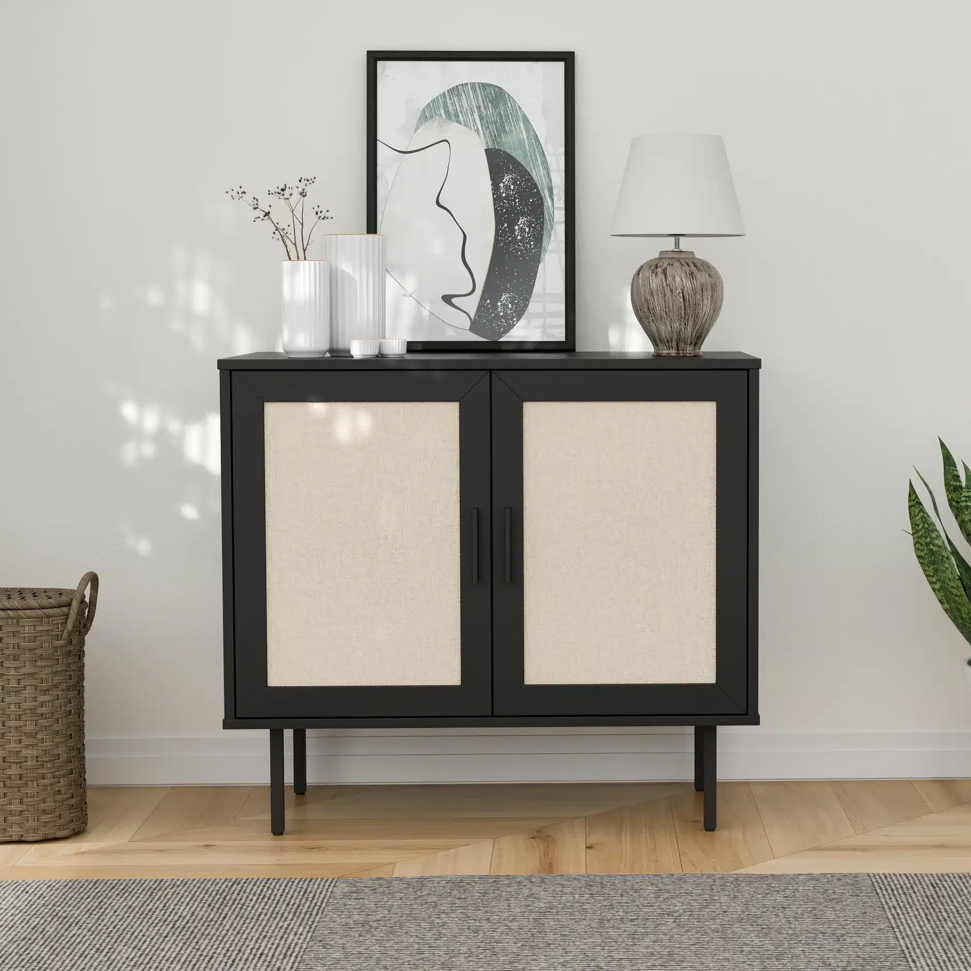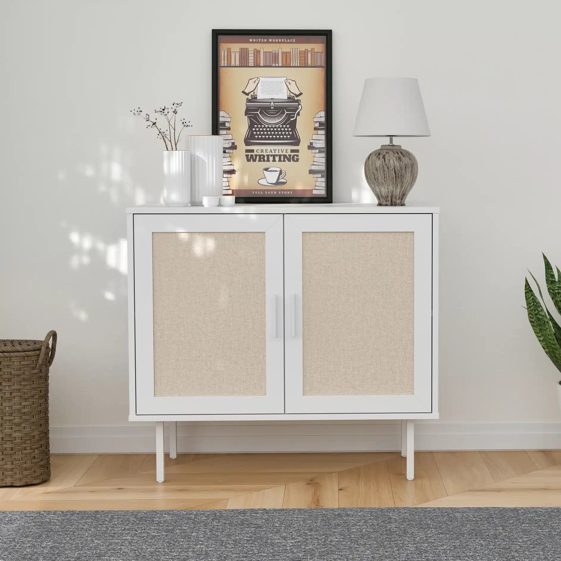 קומודה עם דלתות – ארונית רב שימושית מודרנית בסגנון ראטן