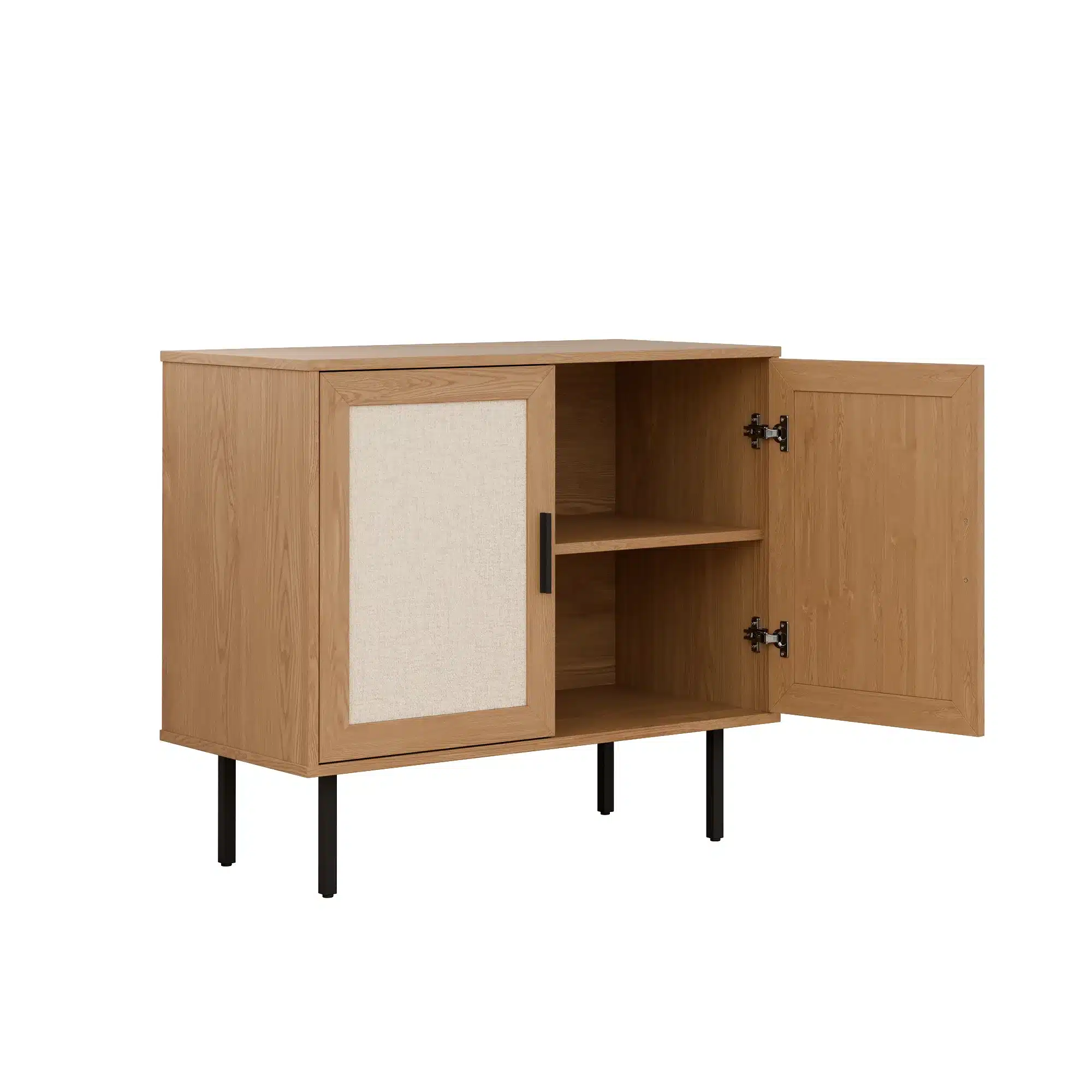 הארונית מציעה חוויית שימוש נוחה ונגישה עם שני מדפים פנימיים המספקים חלל אחסון גדול ומאורגן. שתי הדלתות נפתחות בקלות ומציעות גישה נוחה לכל התוכן, בעוד שהמדפים מתאימים לאחסון חפצים במגוון גדלים – מציוד ביתי ועד אביזרי נוי וספרים.