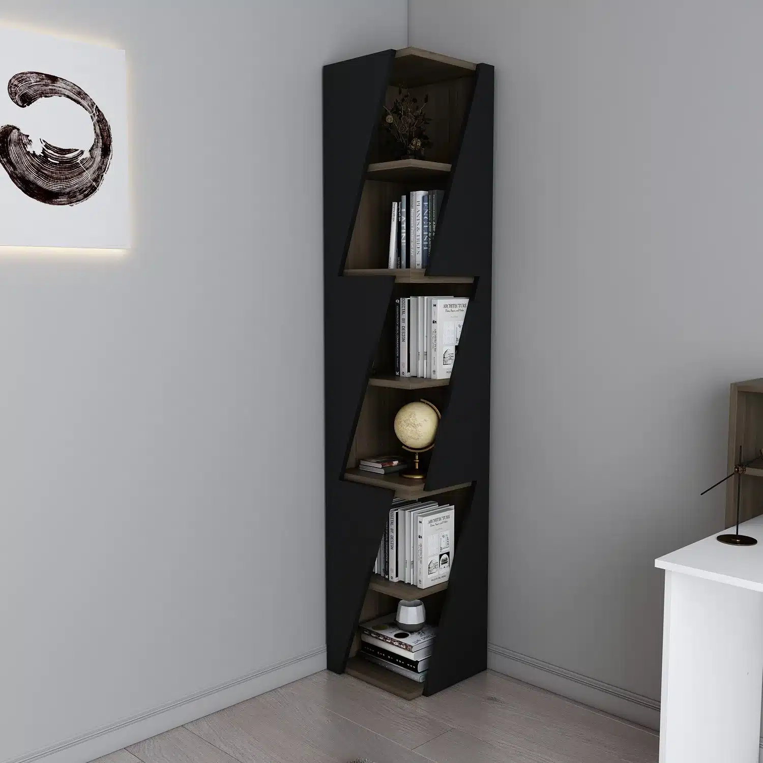 העיצוב האלכסוני החדשני של הכוננית יוצר מראה דינמי ומודרני שמושך את העין ומוסיף עניין ויזואלי לכל חדר. הקווים האלכסוניים שוברים את המונוטוניות של רהיטי אחסון קלאסיים ומעניקים לחלל אופי ייחודי. הכוננית כוללת 6 מדפי אחסון מרווחים המאפשרים לכם לארגן ולהציג את הפריטים האהובים עליכם – ספרים, כלי נוי, גלובוסים, משחקי קופסא ועוד.