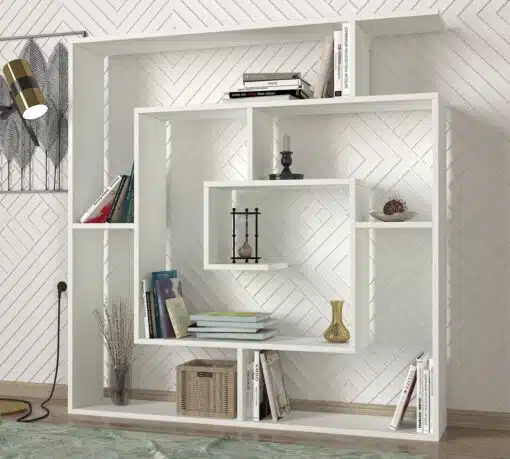 ספרייתנו המודרנית בצבע לבן היא הבחירה המושלמת עבורך! עיצוב נקי ומינימליסטי, משולב עם פונקציונליות מקסימלית, הופכים את הספרייה הזו לתוספת מושלמת לכל חלל.