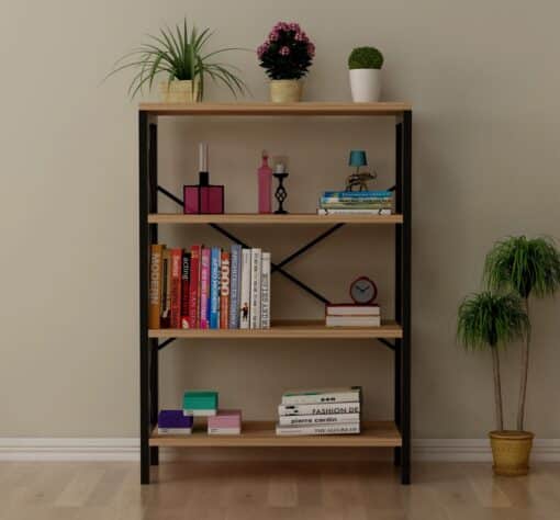 - מדפים מרווחים: ארבעת המדפים הרחבים מספקים שטח אחסון נדיב לספרים, מסמכים, תמונות, צמחים ואביזרים דקורטיביים אחרים.