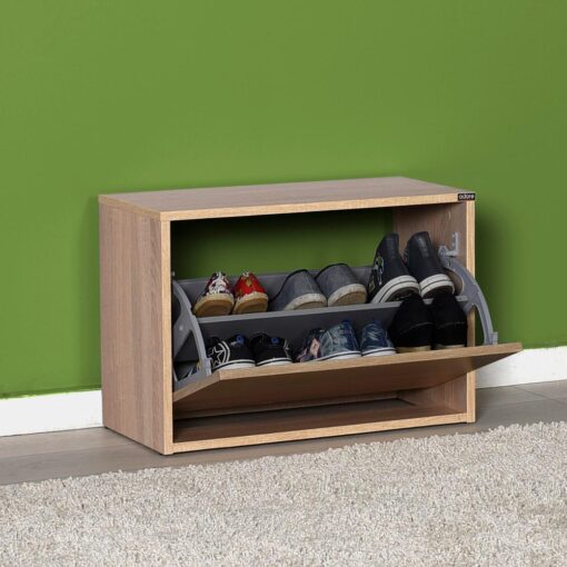ארון נעליים זה, מעוצב בסגנון מודרני ונקי, הוא התוספת המושלמת לחדר השינה שלכם. עם גוון עץ בהיר וחמים, הוא משתלב בקלות בכל סגנון עיצוב. תא האחסון המרווח, המחולק לשני מדפים, מספק מקום מסודר לכל זוג נעליים.