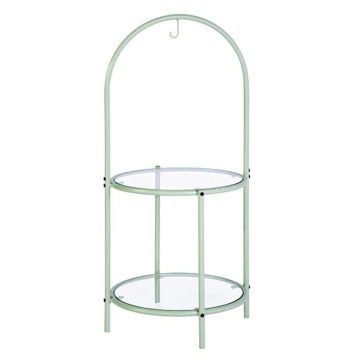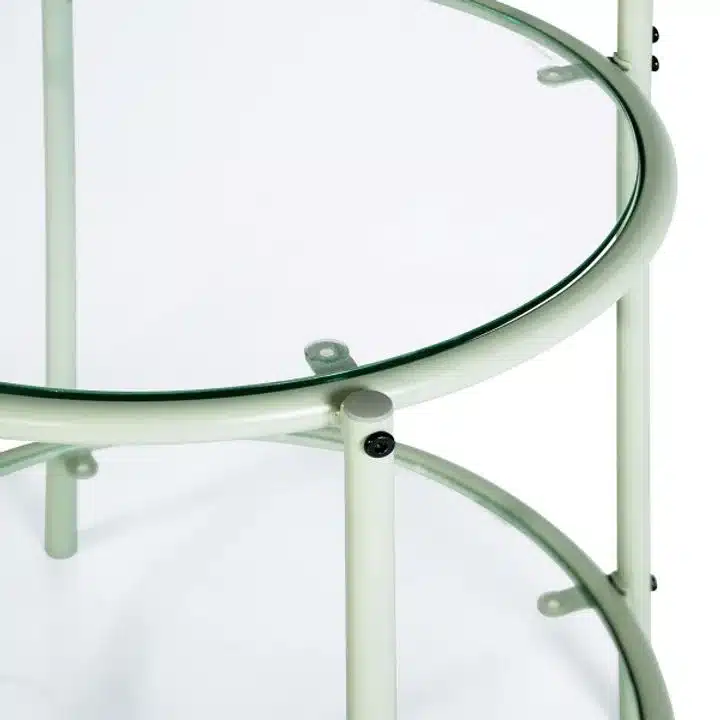 מבנה איכותי: שלדת ברזל חזקה ועמידה בצבע ירוק מנטה עם 2 מדפי זכוכית מחוסמת בעובי 5 מ"מ.