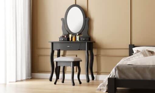 שידת איפור עם מראה בצבע שחור