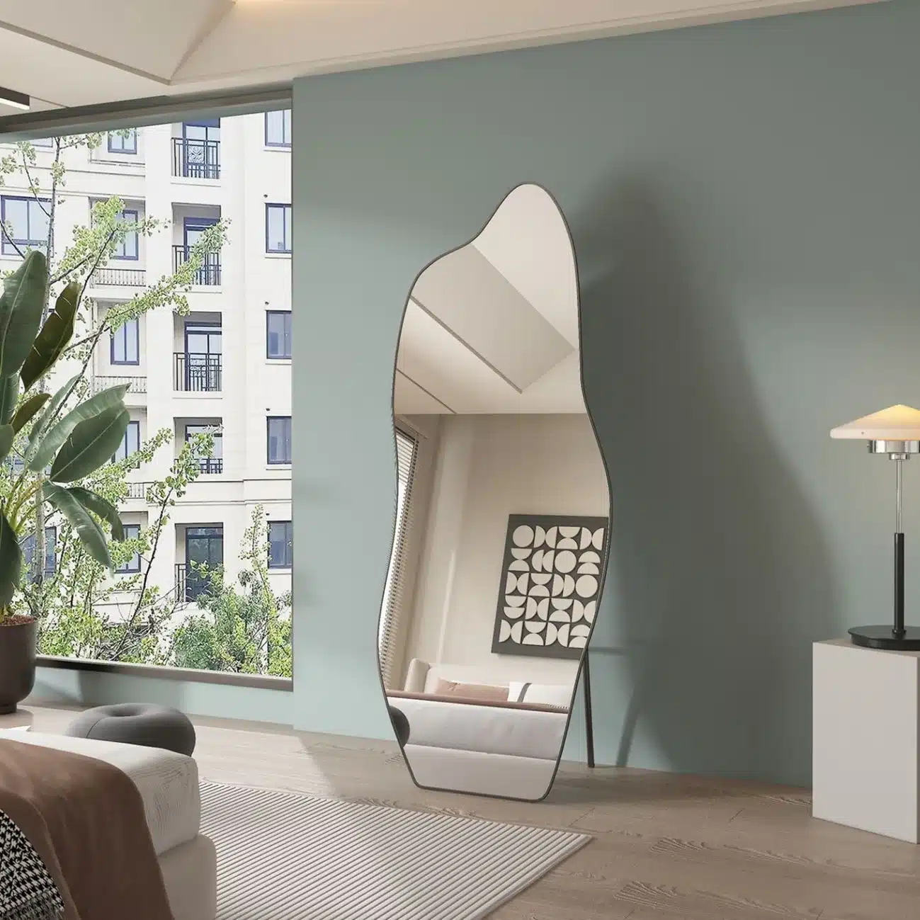 תקציר מוצר – מראת גוף עומדת ותלייה בעיצוב אורגני גדול