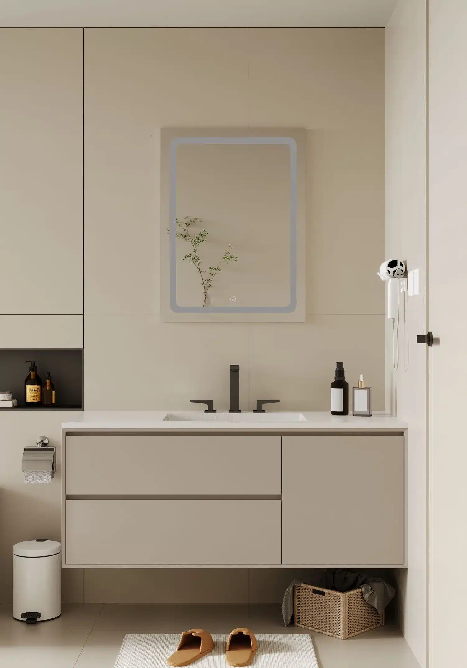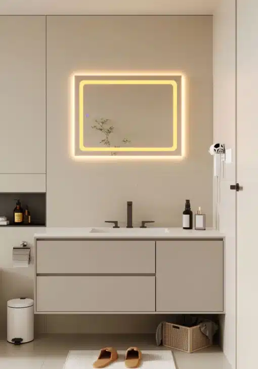 ✓ שני גווני תאורה מתכווננים – אפשרות לבחירה בין תאורה לבנה קרה לאיפור וגילוח מדויק לבין תאורה חמה ונעימה לאווירה רגועה ורומנטית. הגמישות הזו מאפשרת התאמה מלאה לכל מצב שימוש ולכל שעות היום והלילה, ומעניקה שליטה מלאה על האווירה והתאורה בחדר האמבטיה.