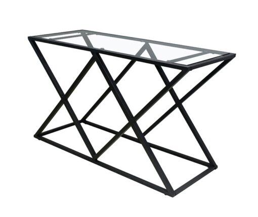 קונסולה זכוכית ומתכת צרה ופונקציונלית, מתאימה למגוון שימושים. בעלת מסגרת מתכת מושחרת חזקה ויציבה, ומדף זכוכית שקוף.