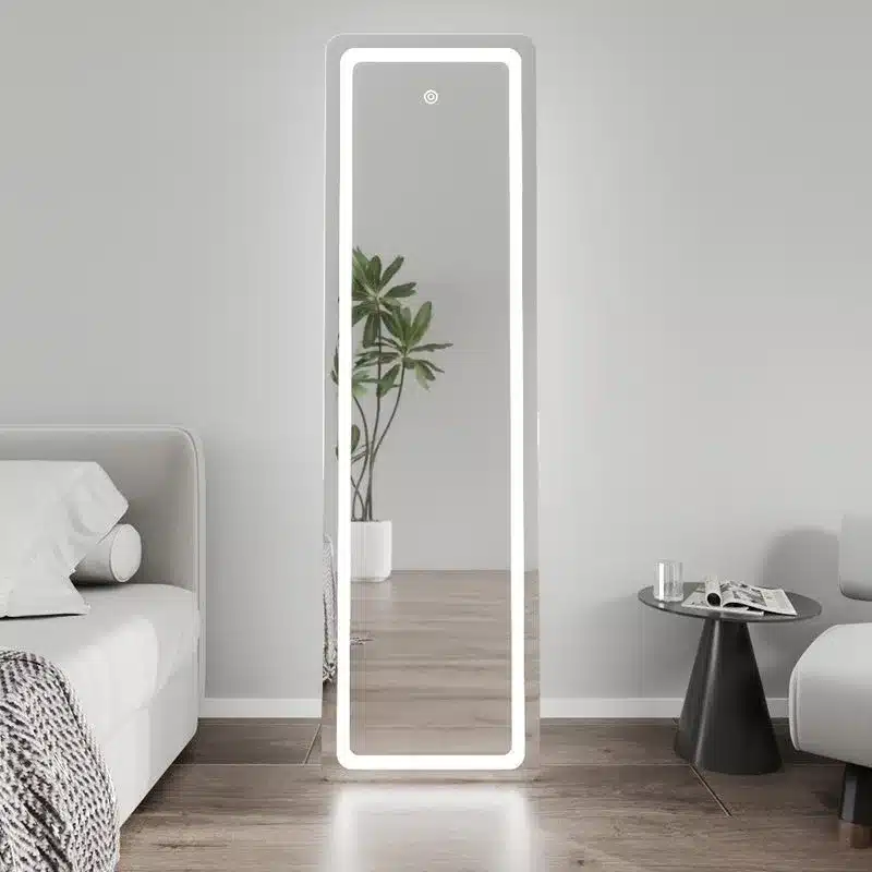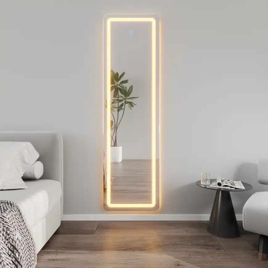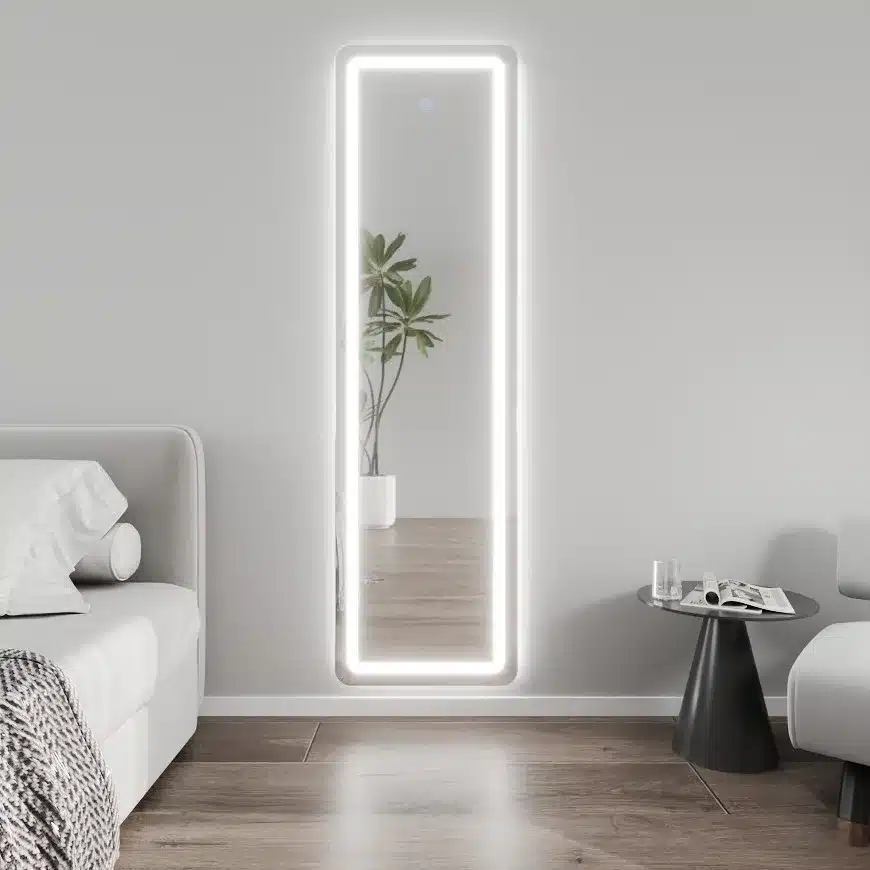 מראה עומדת עם תאורת LED מובנית – פתרון תאורה ועיצוב מתקדם