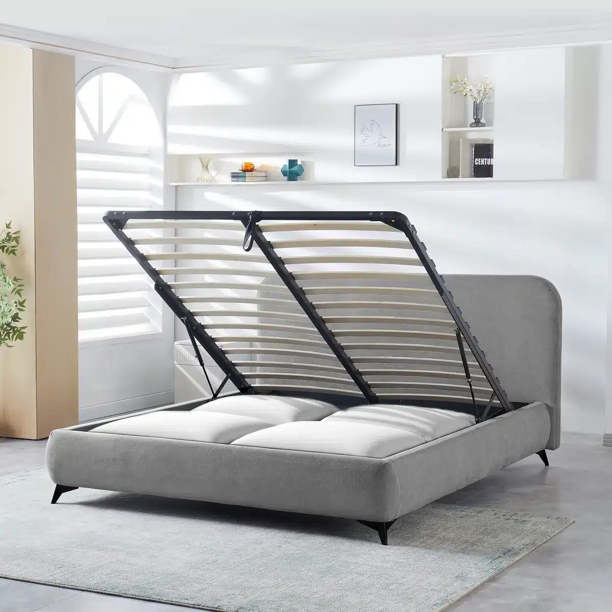 מיטה זוגית מרופדת המשלבת עיצוב אלגנטי, נוחות מקסימלית ואחסון מעשי.