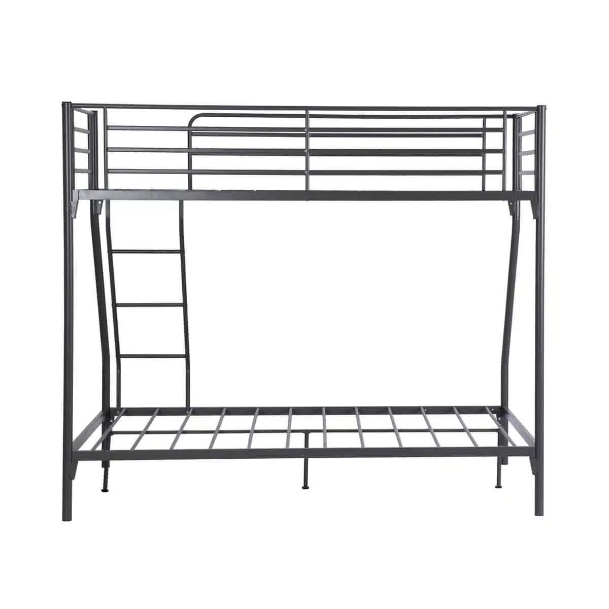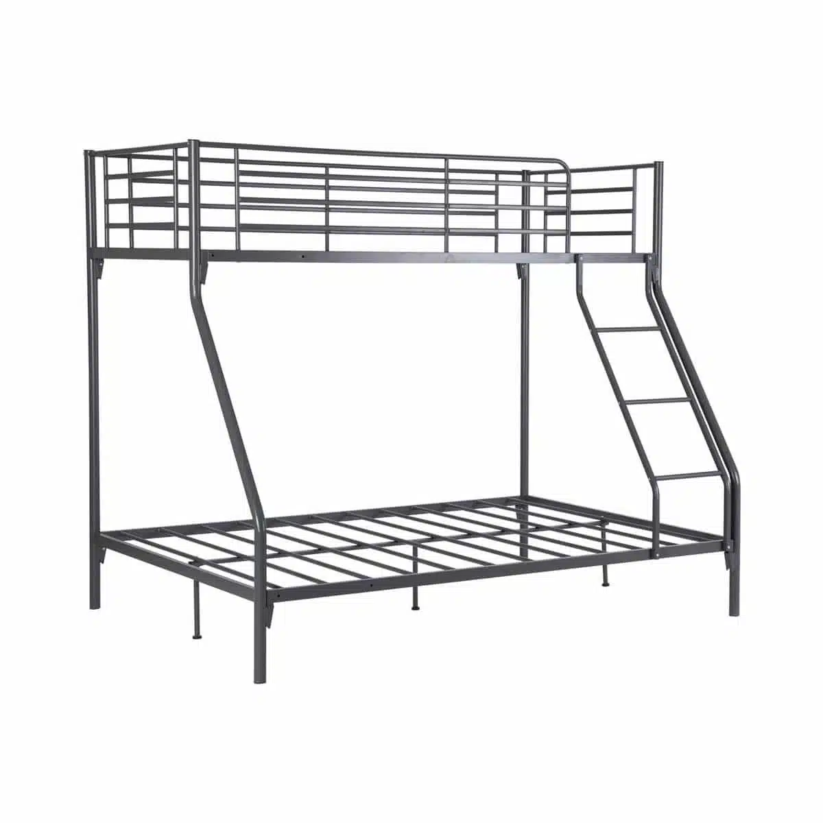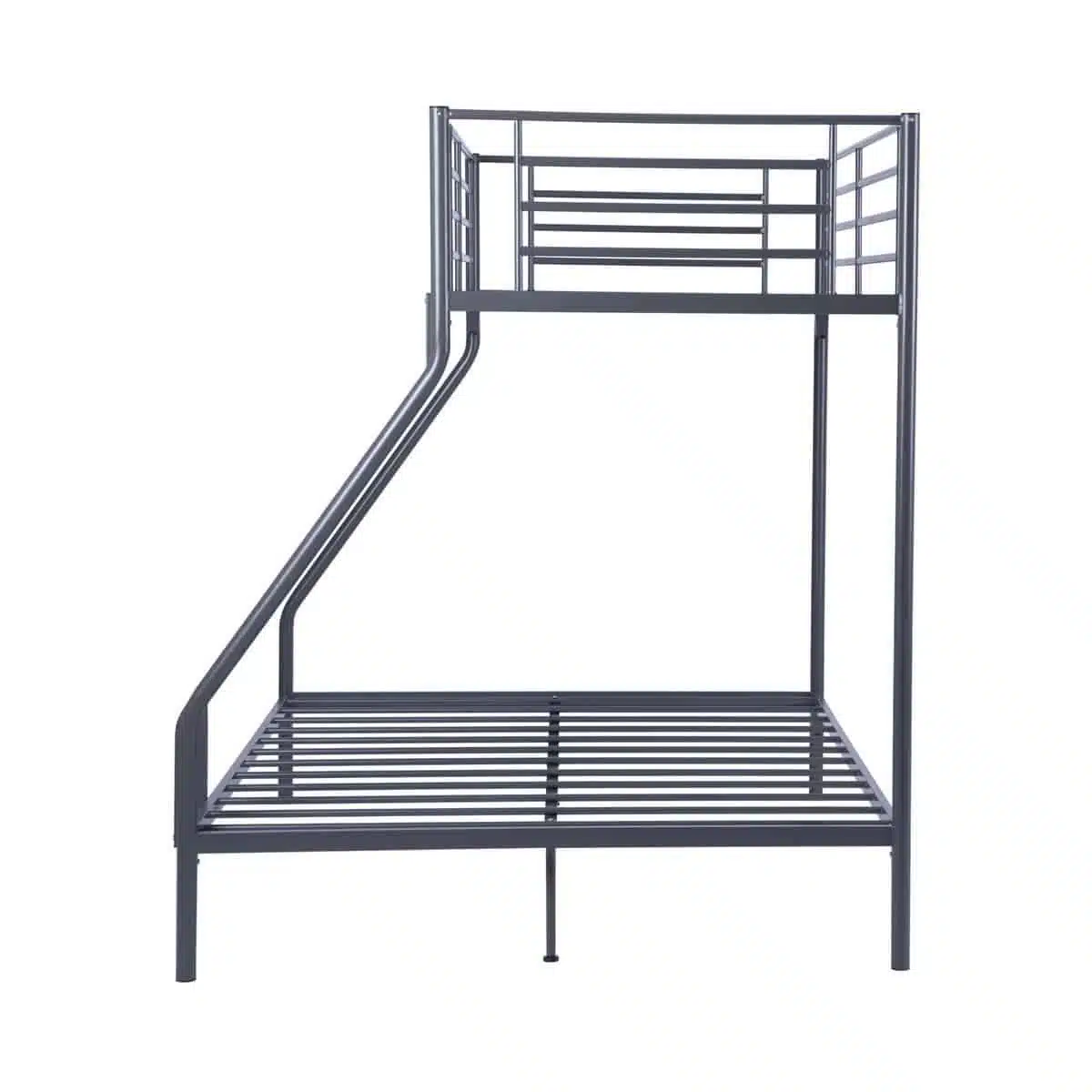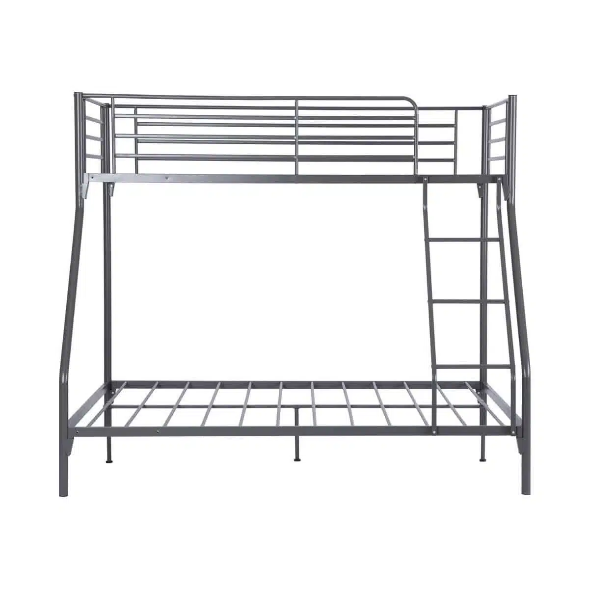 מיטת קומותיים ממתכת בעיצוב מודרני ונקי המשלבת מיטה זוגית רחבה בחלק התחתון עם מיטת יחיד עליונה. פתרון אידיאלי לחדרי ילדים, נוער וחדרי אורחים.