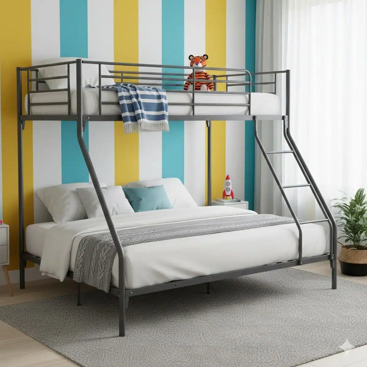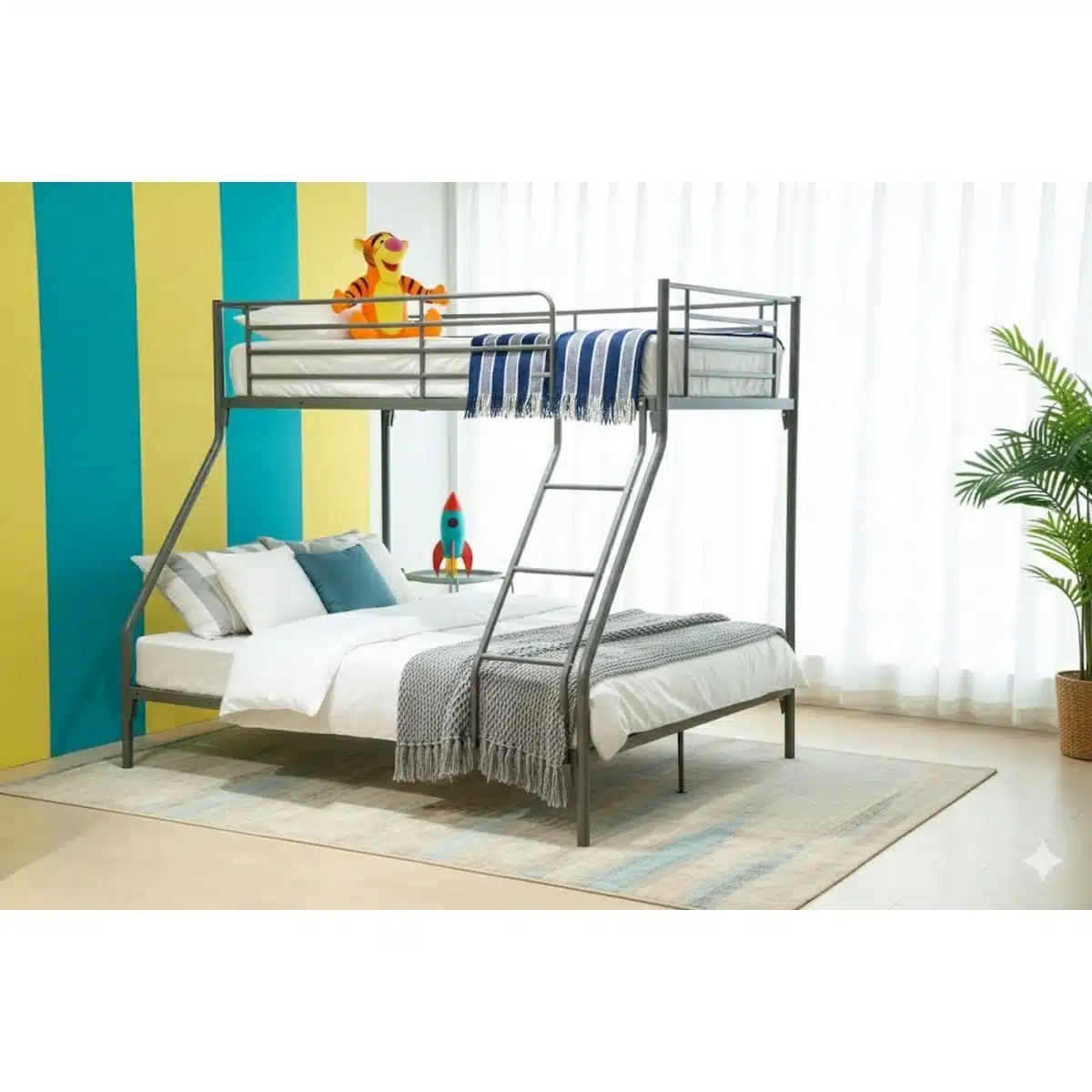 ✓ חיסכון משמעותי במקום – שילוב של מיטה זוגית ומיטת יחיד בטביעת רגל אחת, אידיאלי לחדרים קטנים ובינוניים