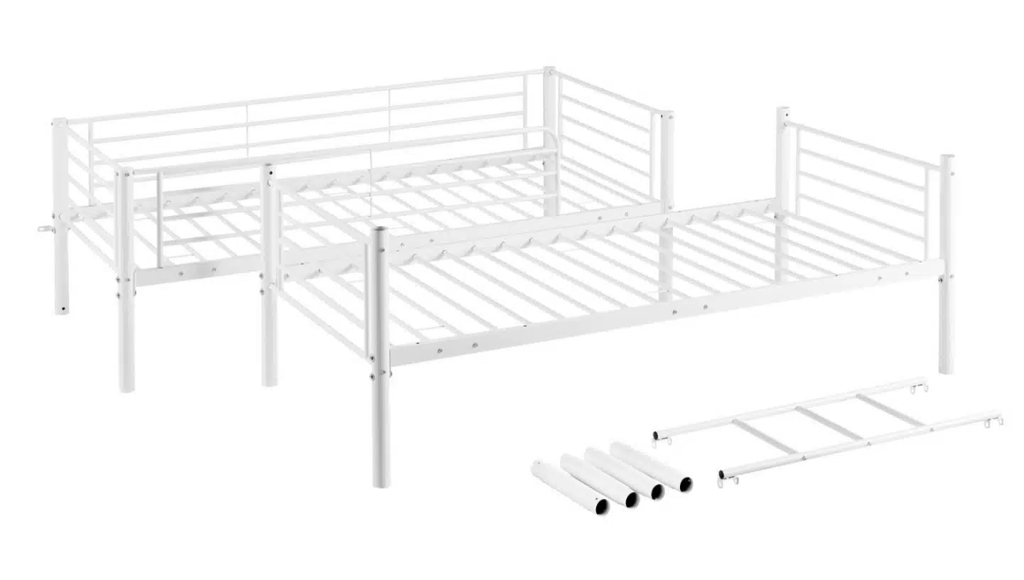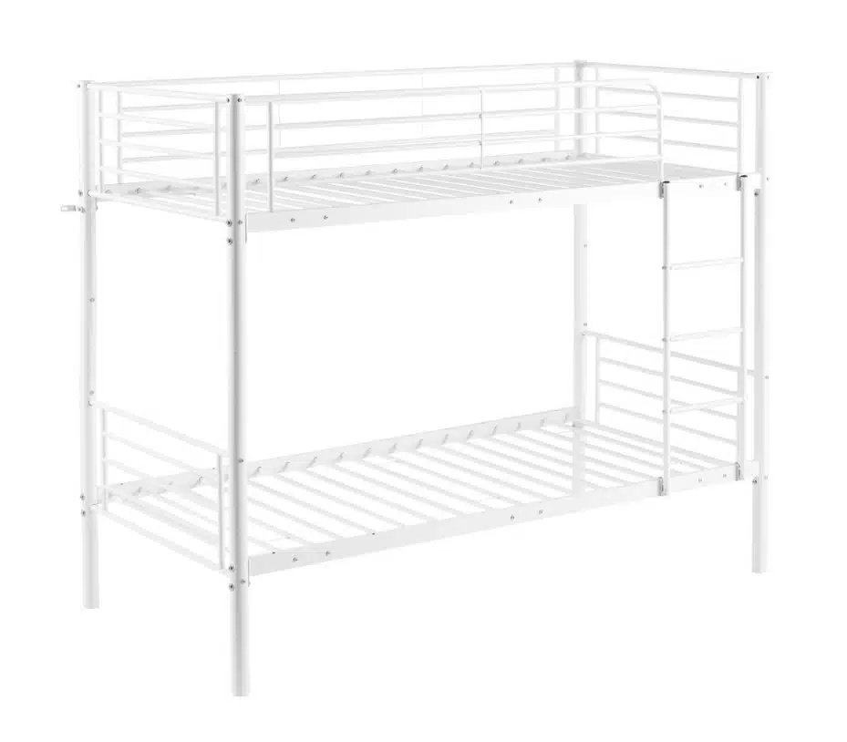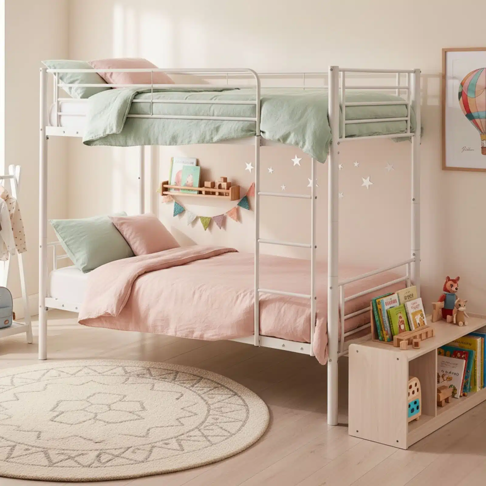 מיטת קומותיים מתכת לבנה מציעה שילוב אידיאלי של פרקטיות ועיצוב מודרני, ומתאימה לחדרי ילדים, נוער ואירוח.