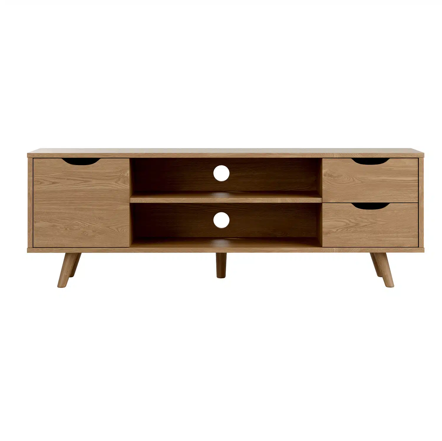 מזנון טלוויזיה לסלון בעיצוב סקנדינבי המשלב קווים נקיים עם רגליים אלכסוניות אופנתיות. המזנון מושלם לדירות קטנות, סלונים מודרניים וחדרי משפחה.
