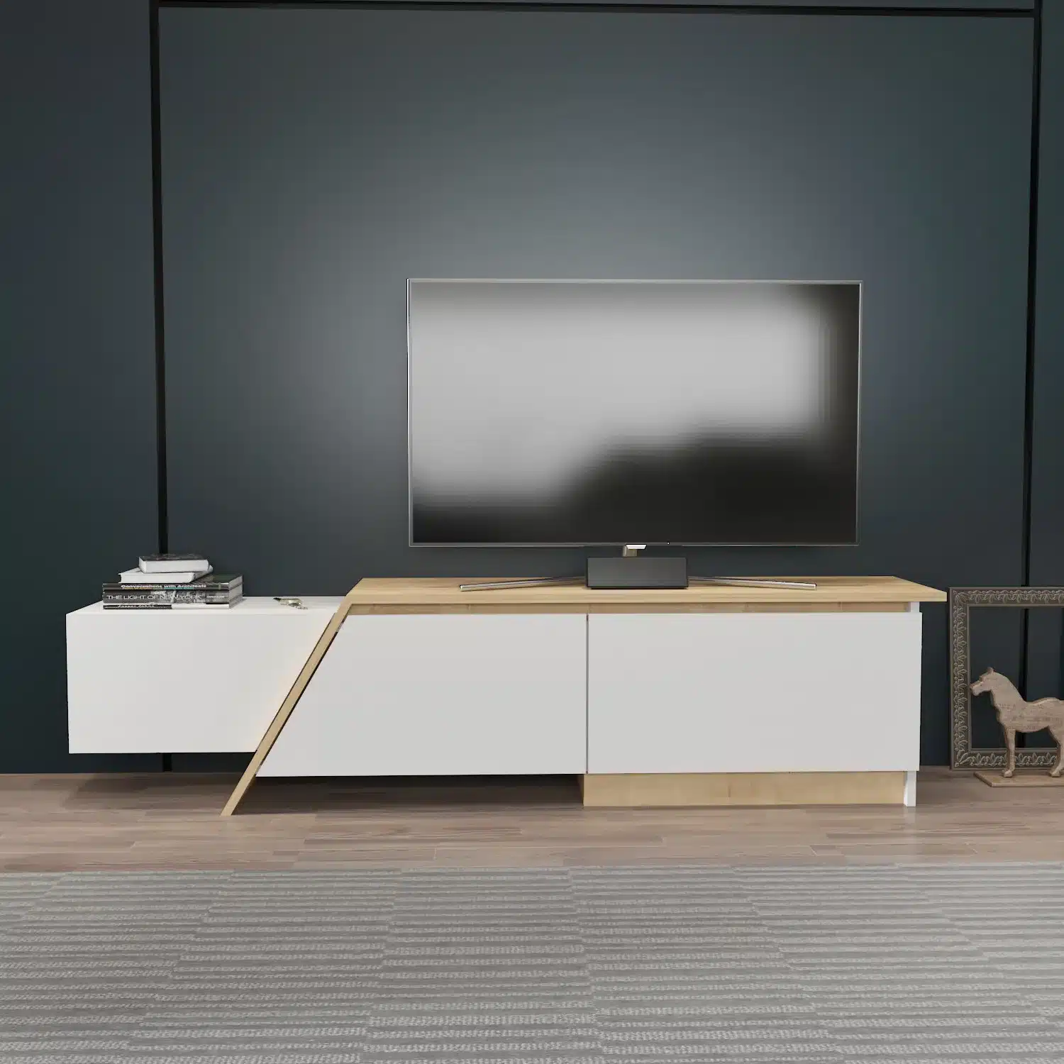 תקציר מוצר – מזנון טלוויזיה מודרני בעיצוב א-סימטרי