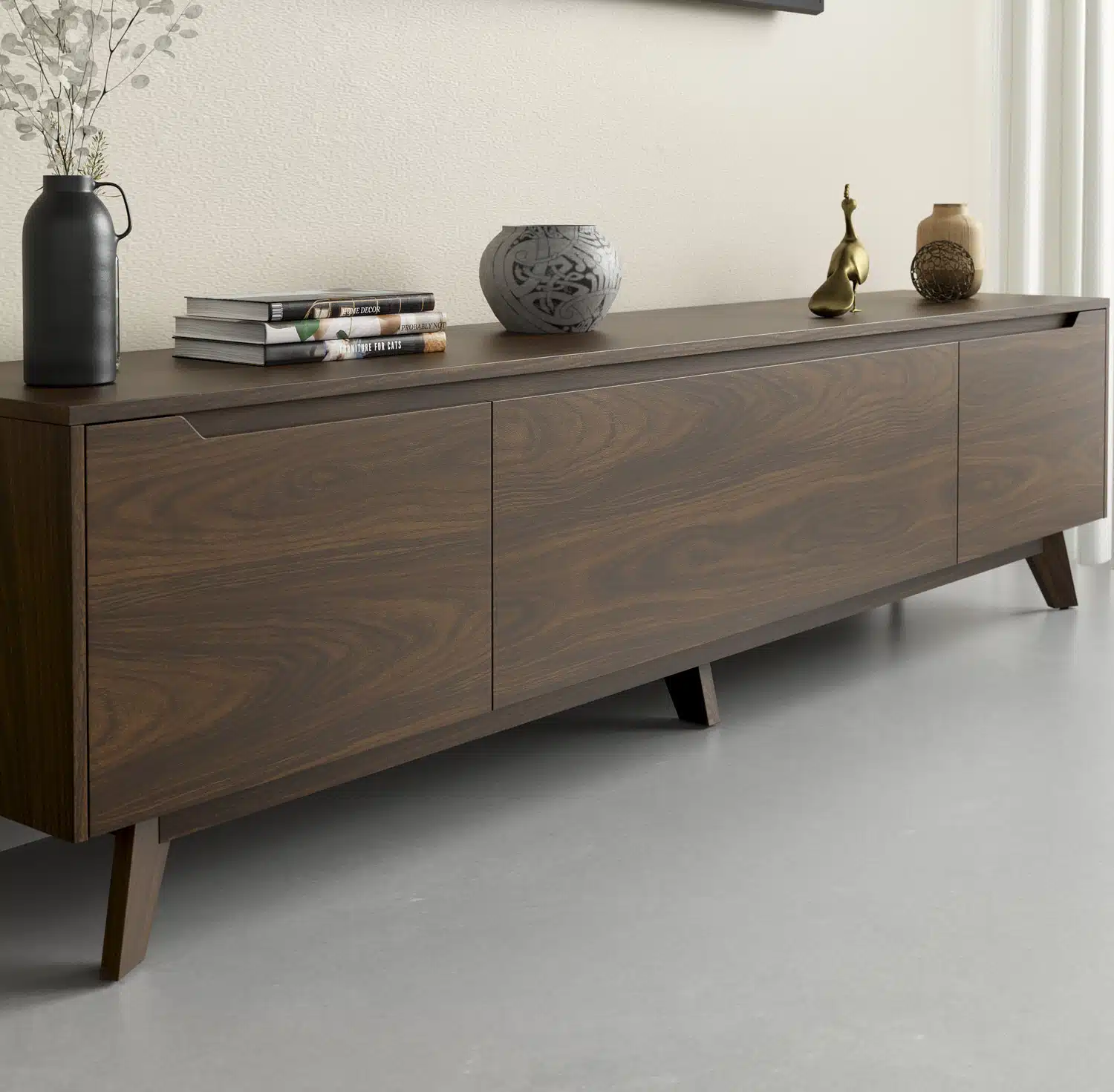 מזנון טלוויזיה מודרני בקווים נקיים המשדרג כל סלון בנוכחות שקטה ומאוזנת. עיצוב יוקרתי המשלב פונקציונליות מתקדמת עם אסתטיקה מרשימה.