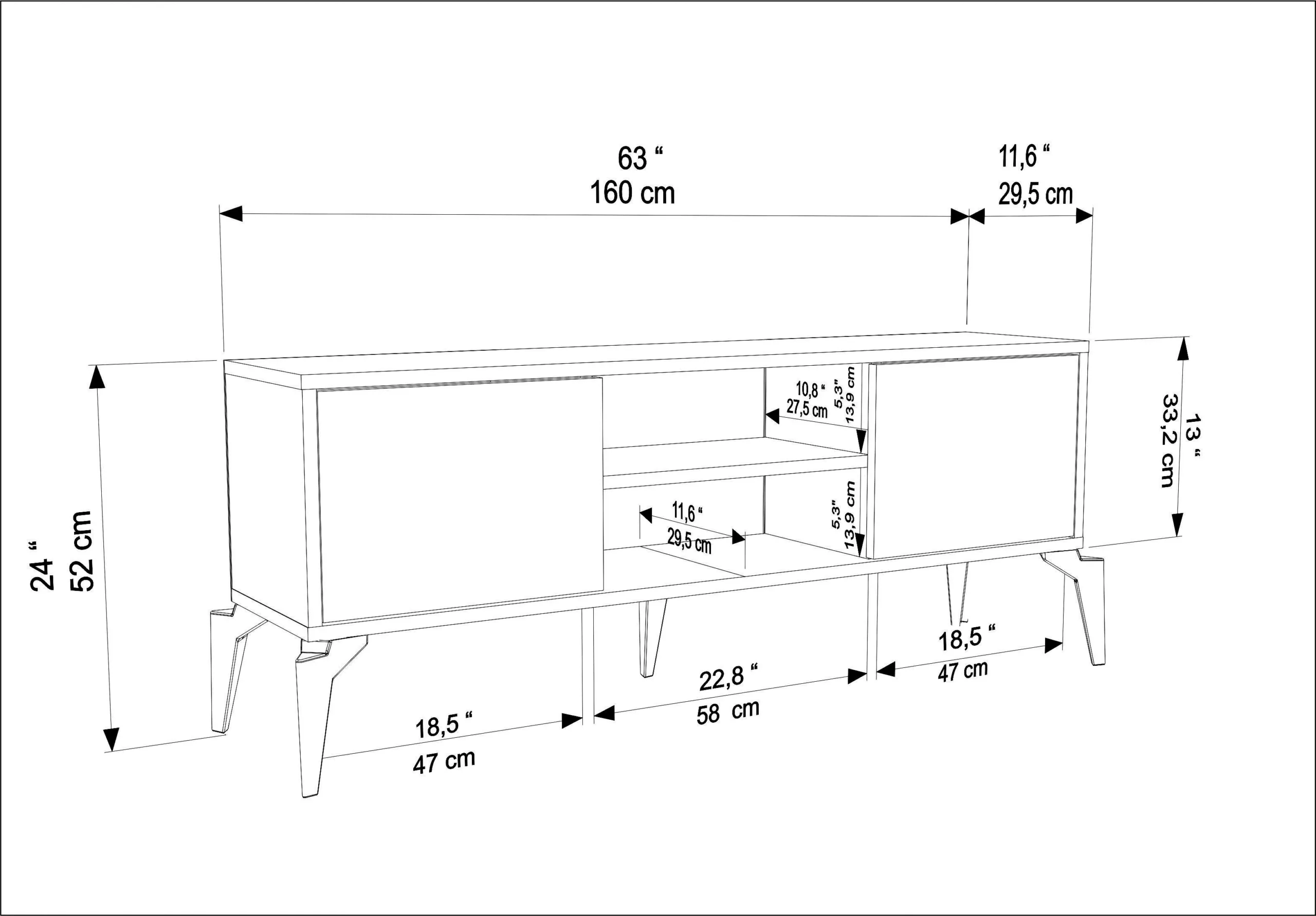 מידות: 160x52x30 ס"מ | מתאים לטלוויזיות עד 65 אינץ'