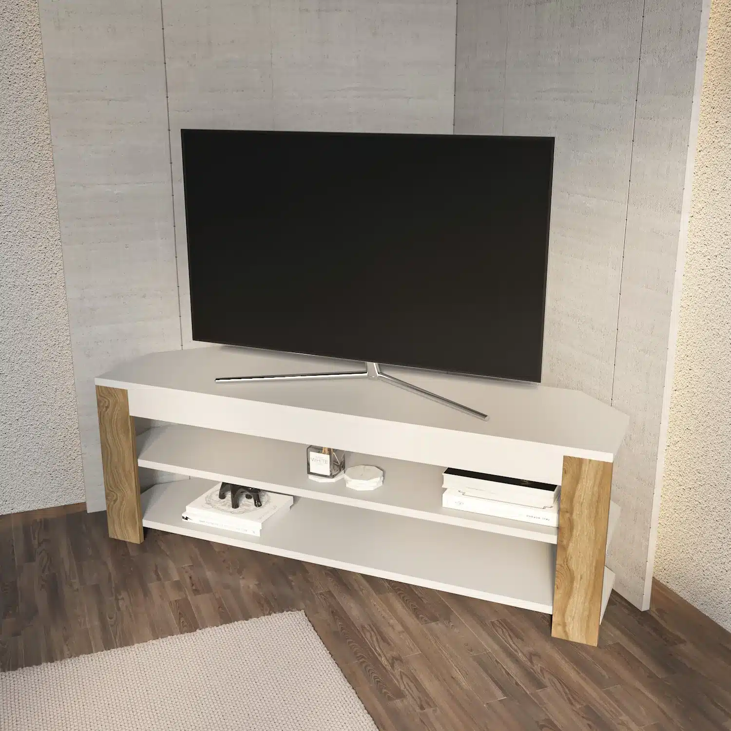 מזנון טלוויזיה פינתי בעיצוב מודרני ונקי המשלב פונקציונליות מעולה עם מראה אלגנטי. הפתרון המושלם לניצול חכם של פינות הסלון.