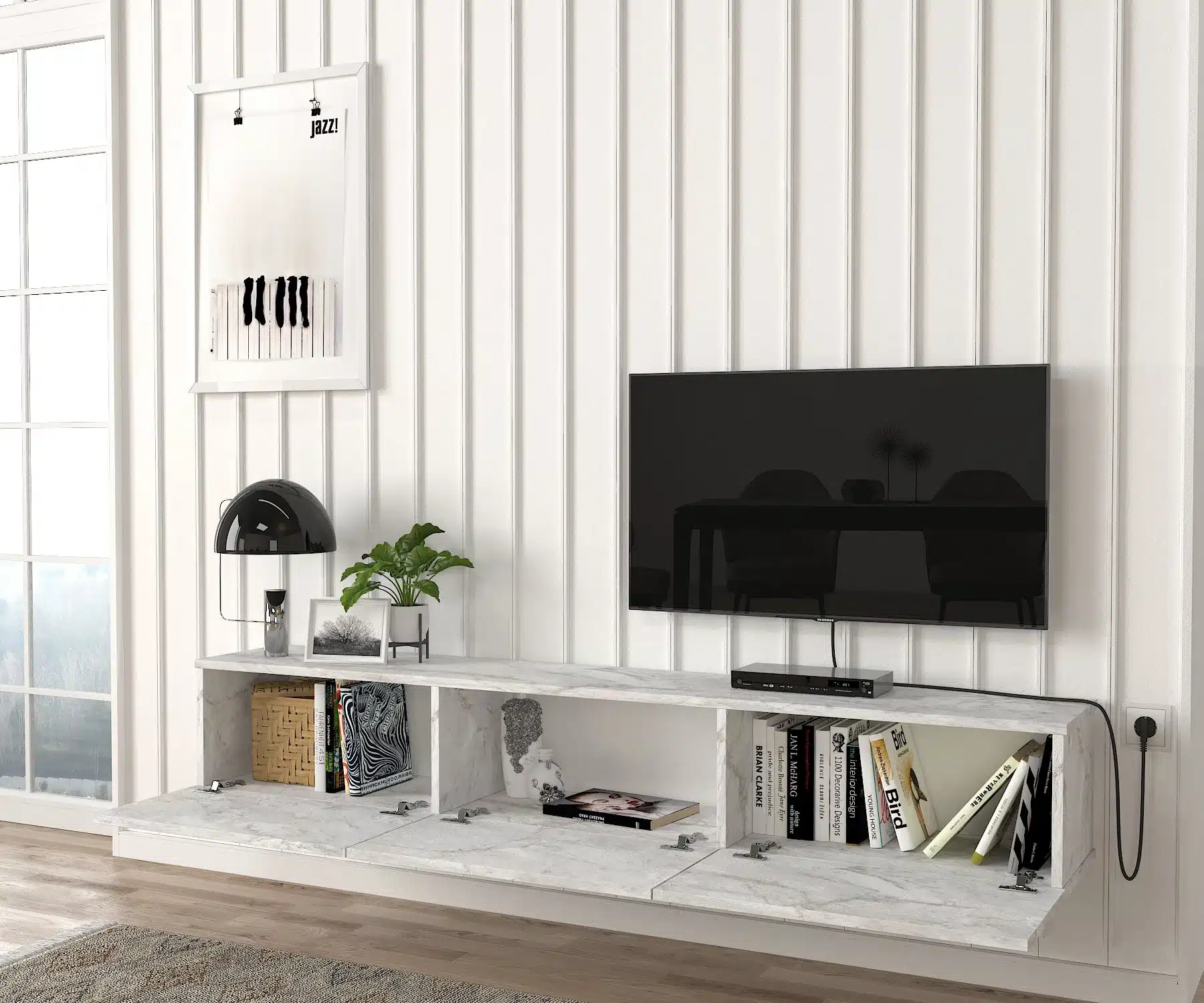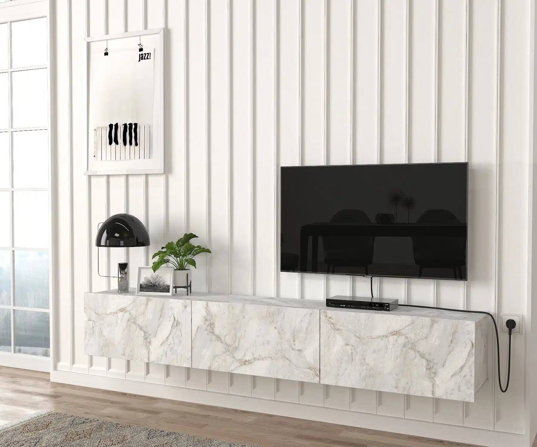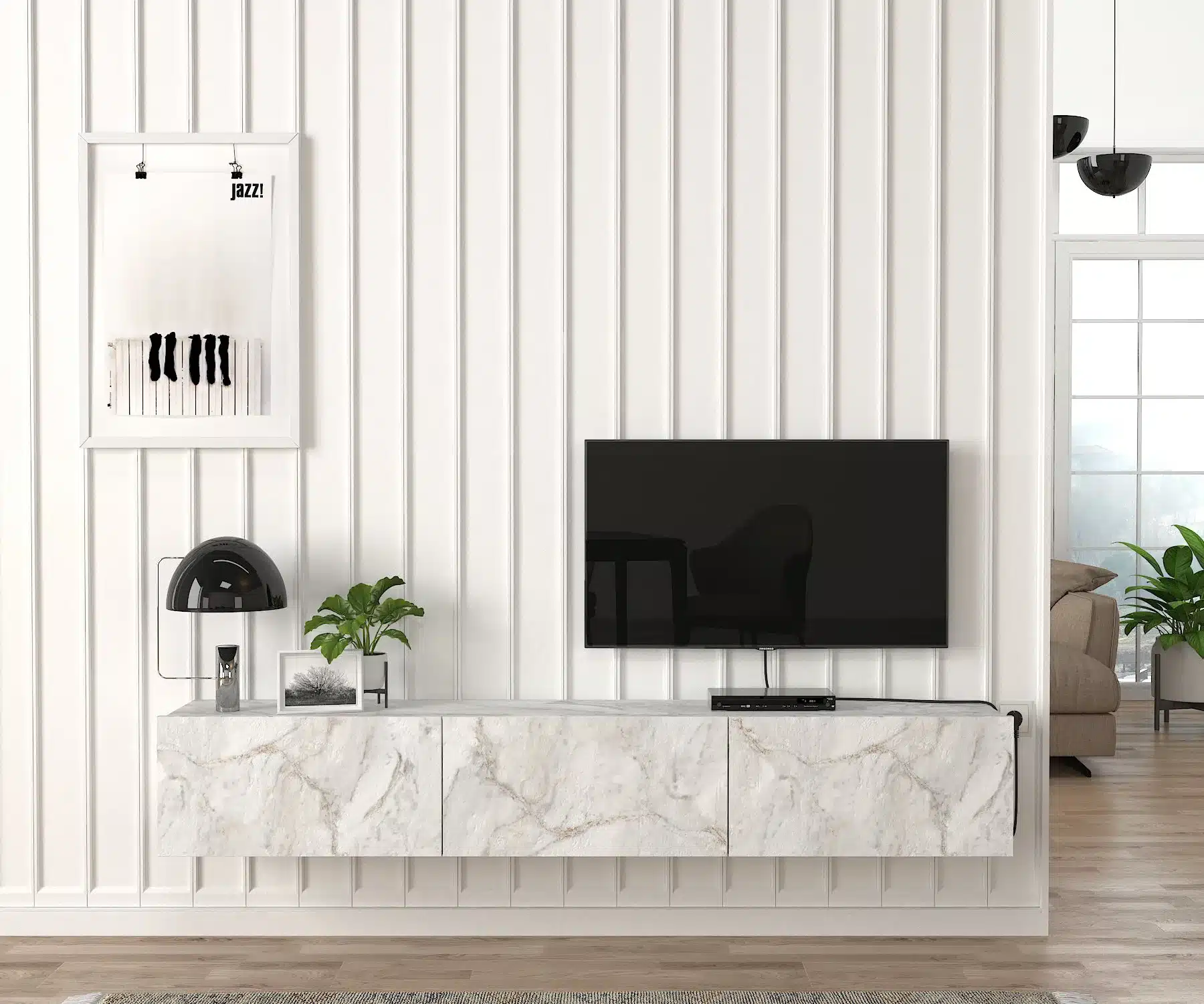 מזנון טלוויזיה תלוי מודרני – עיצוב מרחף אלגנטי לסלון מושלם