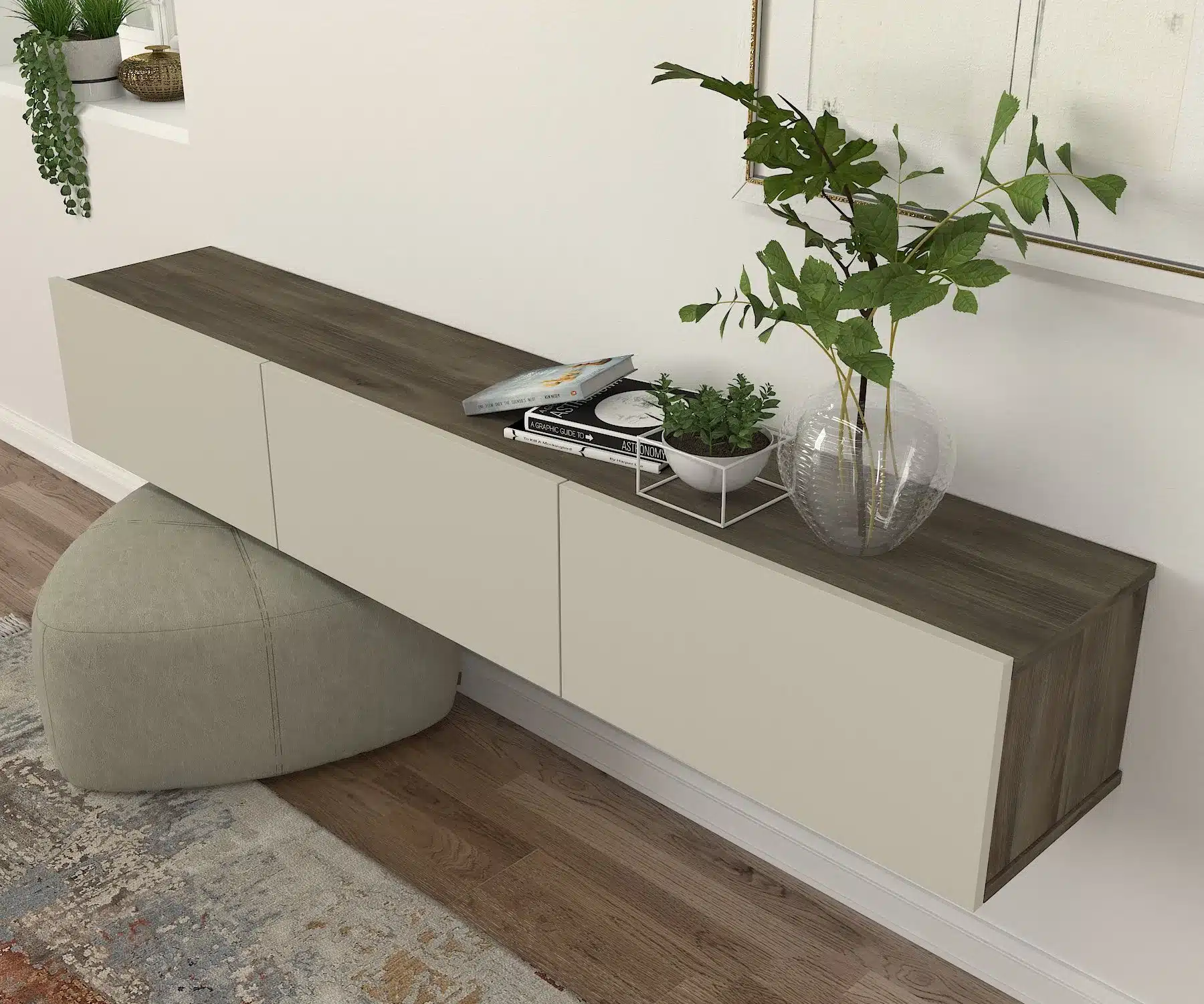 מזנון צף מעוצב עם 3 תאי אחסון וגימורים מרשימים לחלל המגורים שלכם