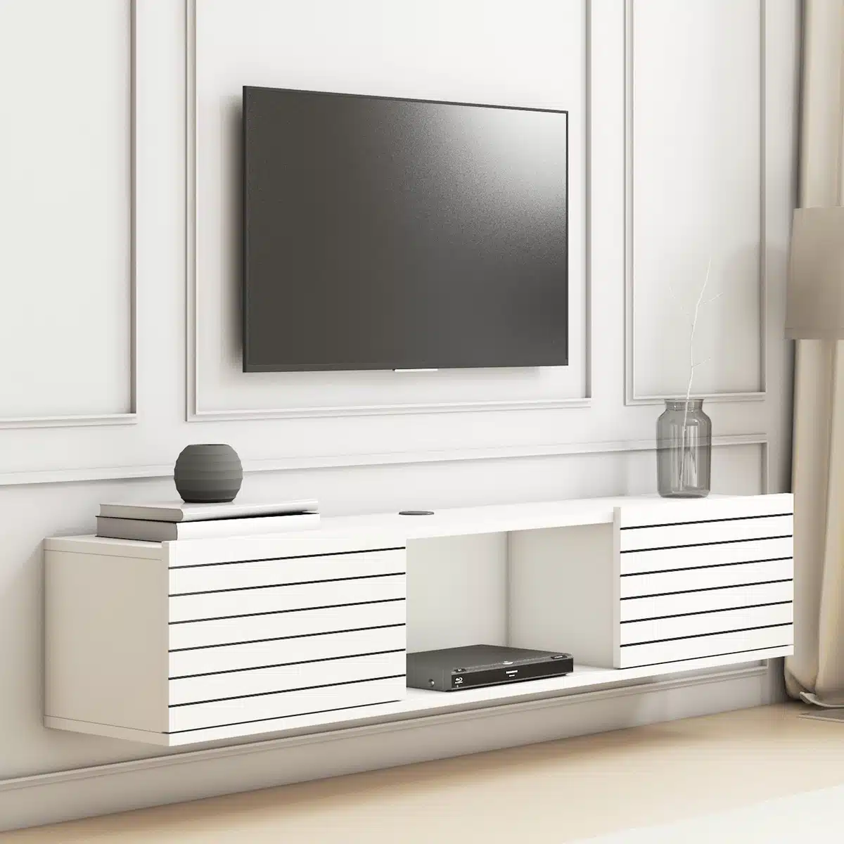 מזנון טלוויזיה צף לבן – מינימליסטי ואלגנטי