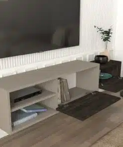 - פונקציונליות: שני תאי אחסון גדולים ושני מדפים פתוחים מספקים מקום מספיק לכל הציוד האלקטרוני שלך, קונסולות משחקים, ספרים ועוד.