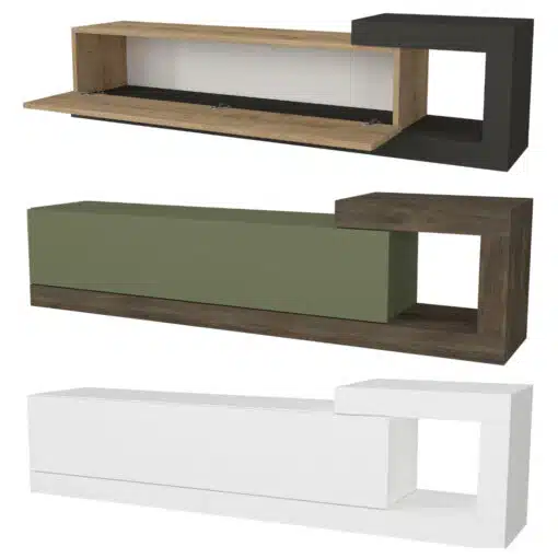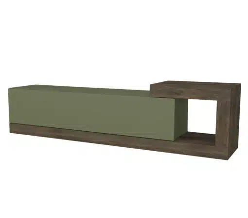 שילוב ייחודי של ירוק עמוק וגוונים חמים של עץ אגוז יוצר מראה מרענן ומודרני. המזנון מעוצב עם תא אחסון גדול ונפתח בקלות, מושלם לאחסון של כל הציוד האלקטרוני שלך.