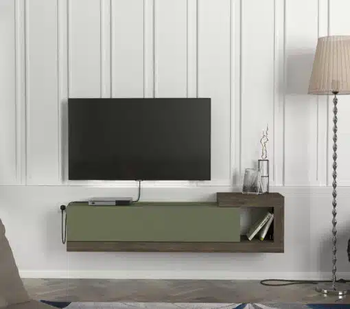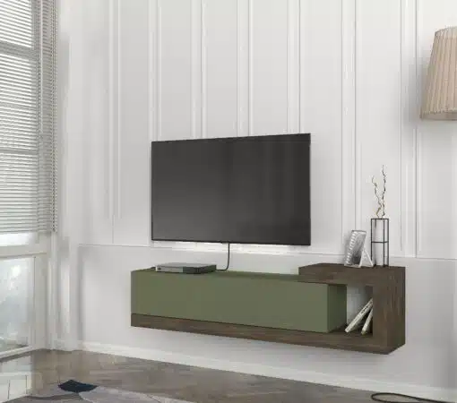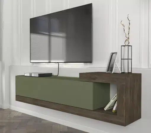מזנון צף ירוק עם גוון עץ אגוז – חידוש מרענן לסלון שלך!