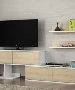 הצגנו עבורכם את המזנון המושלם! עיצובו המינימליסטי, בשילוב של לבן אלגנטי וגוונים חמים של עץ, יכניס חמימות ואלגנטיות לסלון שלכם. המזנון מציע שפע של מקום אחסון, עם תאים גדולים ומדפים מרווחים, כך שתוכלו לשמור על הסלון שלכם מסודר ומאורגן.