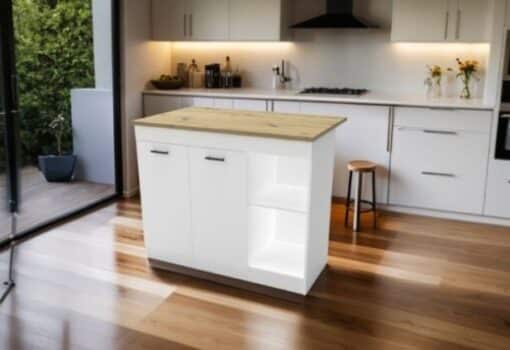 מאפיינים טכניים מתקדמים: • פלטה PRIME TOP בעובי 25 מ"מ בסגנון בוצ'ר • יחידת אחסון עם מדפים פתוחים וארונית סגורה • ידיות מתכת שחורות לעיצוב מודרני