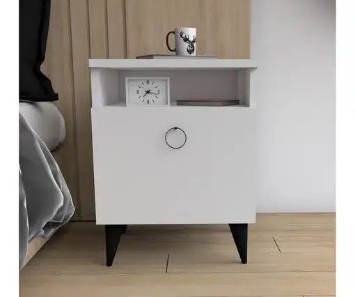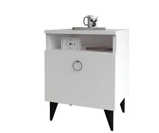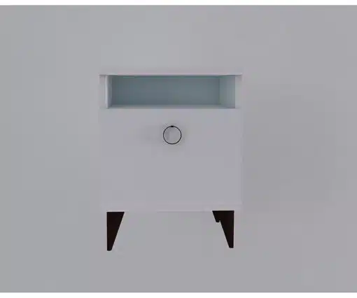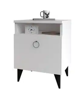 שידת לילה לבנה בעיצוב קלאסי עשויה משבבית דחוסה בעובי 18 מ"מ עם חיפוי מלמין איכותי עמיד וקל לניקוי.