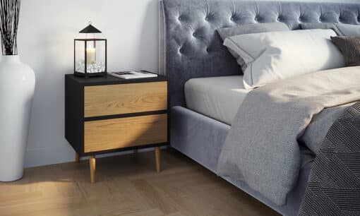 שידה לחדר השינה עם מגירות בצבע שחור משולב אלון עשויה מעץ מתועש עם חיפוי מלמין