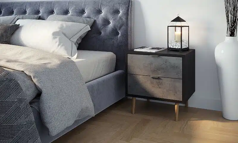 שידת צד לחדר השינה בגוון אפור משולב שחור