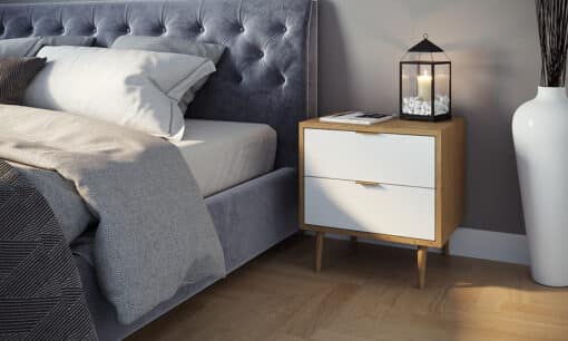 שידת צד מיטה מעוצבת עם שני מגירות אחסון עשויה מעץ מתועש עם חיפוי מלמין יצוק