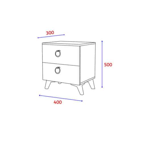 שידת צד מיטה עם מגירות בגוון עץ עשויה מעץ מתועש עם חיפוי מלמין . המגירות נעות על מסילות מתכת , הרגליים של השידה עשויות מ-פי וי סי עמיד. השידה מעוצבת בסגנון קלאסי ותשתלב היטב לצד עיצובים וסגנונות שונים.