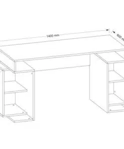 שולחן מחשב לבית או למשרד בעיצוב מתוחכם פונקציונלי עם משטח עבודה גדול ומדפי אחסון בשני הצדדים. השולחן עשוי משבבית דחוסה עם חיפוי מלמין איכותי עמיד וקל לניקוי בצבע לבן משולב עם גוון עץ אגוז..