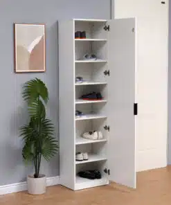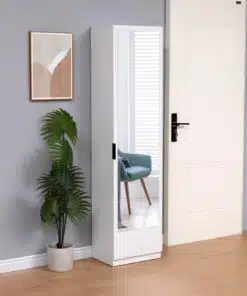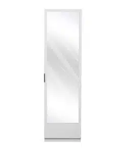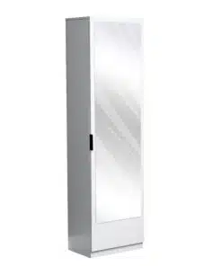 ארון מדפים דלת אחת לבן עם מראה . הארון כולל 8 מדפים מודולריים – ניתן לרווח ולהתאים את גובה המדפים