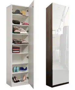 ארון דלת אחת עם מדפים עם מראה בגוון עץ שיטה . הארון מכיל 8 מדפים שניתן לרווח לפי הצורך. הארון עשוי מ-MDF דחוסה בחיפוי מלמין איכותי בגוון עץ.