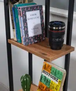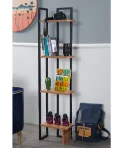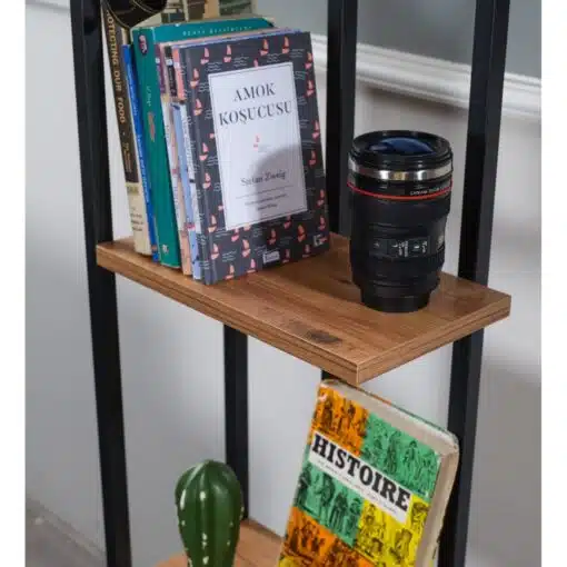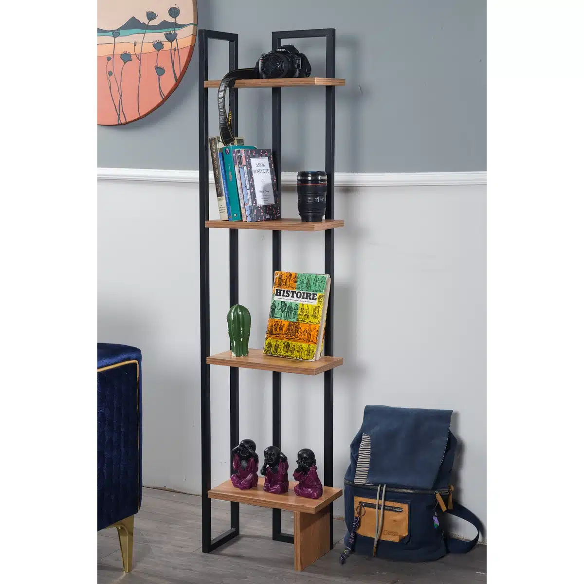 ארון מדפים מעוצב עם 5 מדפים נוחים לאחסון ולהנחת פרטי נוי . ישתלב היטב בבית או במשרד. הארון עשוי מתכת אל חלד בצבע שחור ואם די אף עם חיפוי מלמין בגוון אגוז.