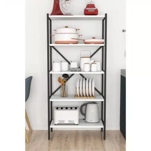 העיצוב המודרני והנקי של ארון המדפים הפתוח BR23 משלב מדפי עץ מתועש עם חיפוי מלמין יצוק איכותי עם מסגרת מתכת אל חלד חזקה ויציבה בגוון שחור אלגנטי. השילוב המרשים בין הלבן הנקי לשחור העמוק יוצר ניגודיות מושלמת ומראה עכשווי המתאים לכל סגנון עיצוב מודרני, תוך מתן דגש על עמידות ויציבות לאורך שנים.
