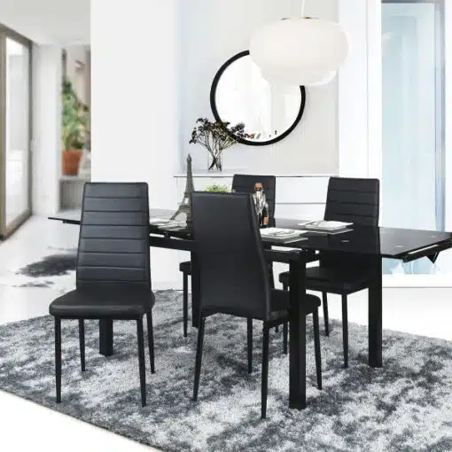 שולחן אוכל נפתח – זכוכית שחורה