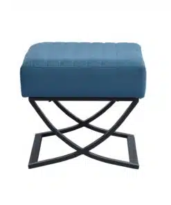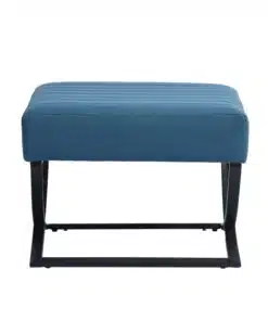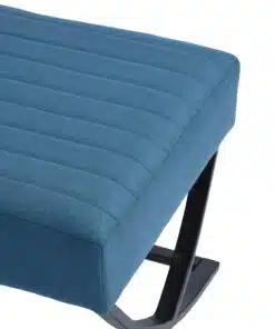 הדום ישיבה לסלון או לחדר השינה בבד כחול איכותי עמיד וקל לניקוי מרופד על גבי ספוג בצפיפות גבוה, מסגרת הדום עשויה ממתכת אל חלד בצבע שחור.
