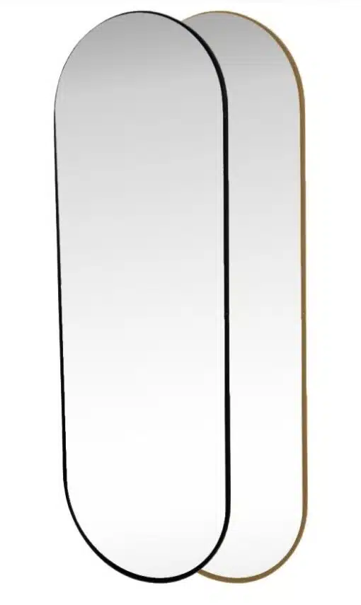 מראת גוף אובלית בעיצוב נקי ומסגרת דקה עשויה מתכת אל חלד. המראה מתאימה לתלייה אנכית או מאוזנת . מושלמת כמראה גוף לחדר השינה או לסלון או בתלייה לאורך כאלמנט עיצובי.