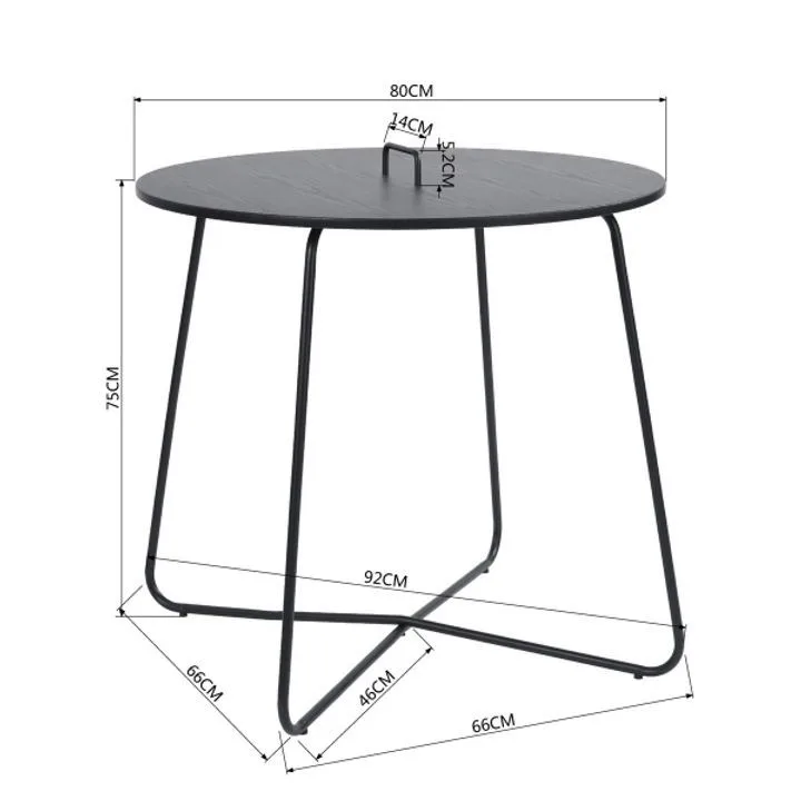 ✓ פונקציונליות מעשית – ידית נשיאה מתכתית על השולחן מקלה על הזזה ושינוי מיקום, והצורה העגולה מאפשרת שיחה פנים אל פנים ויוצרת אווירה חמימה ומזמינה לסועדים