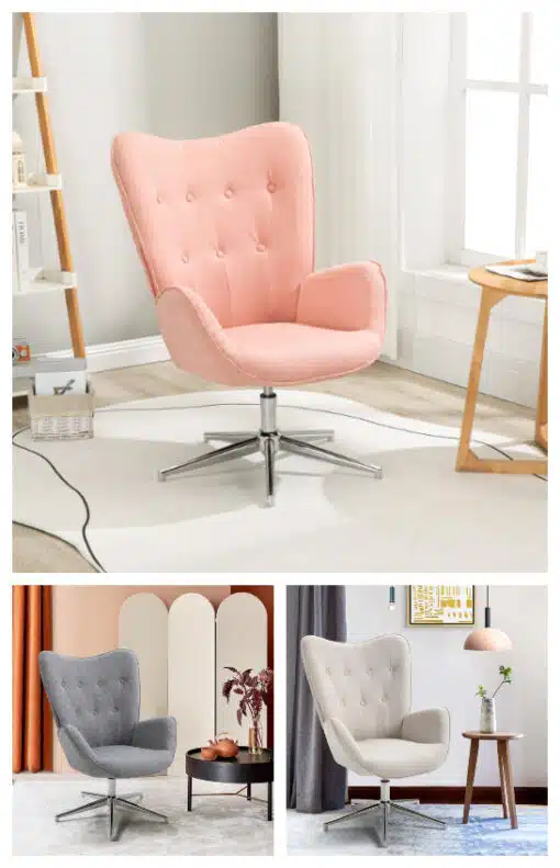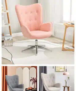 כורסא מעוצבת בסגנון קפיטונאג' בבד אריג בצבע ורוד פסטל , הכורסא מרופדת היטב בספוג איכותי בצפיפות גבוה , מסגרת הכיסא עשויה מתכת אל חלד חזקה ויציבה בגימור כרום ניקל.