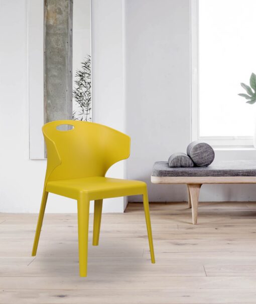 כסאות פלסטיק איכותיים בצבע צהוב חרדל בעיצוב מודרני וגימור מושלם. הכיסאות מתאימים לשימוש פנים וחוץ.