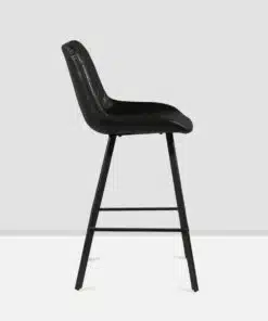 כסאות בר שחורים דמוי עור איכותיים ומעוצבים להפליא . הכיסאות מרופדים בדמוי עור איכותי ועמיד עם תפירה מעוצבת במשענת הגב , מסגרת הכיסאות עשויה ממתכת אל חלד איכותית ועמדיה , כסאות הבר האלו נוחים במיוחד ומעוצבים בסגנון רטרו קלאסי וישתלבו גם מגוון רחב של סגנונות וצבעים.