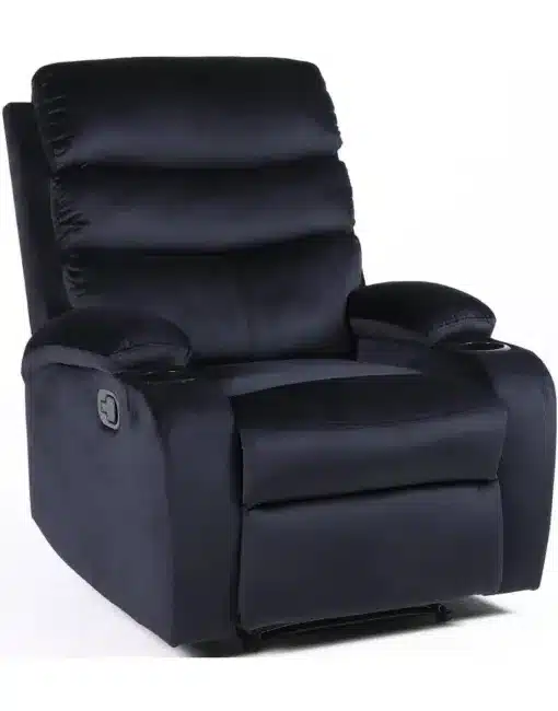 כורסת טלוויזיה רקליינר בעיצוב מודרני עם ריפוד קטיפה מפנק. הכורסה מושלמת לסלון או חדר שינה בזכות גודלה הקומפקטי.