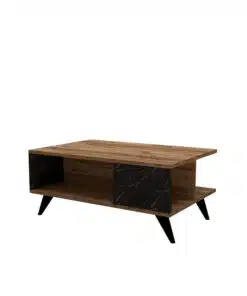 שולחן קפה מלבני אלגנטי – דגם HM08023: שילוב מנצח של עץ אגוז ושיש מודרני